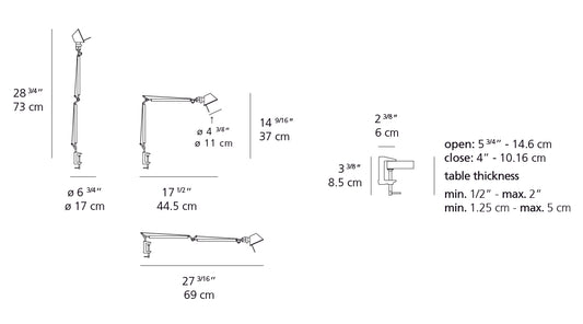 Artemide Tolomeo Classic Aluminum with Clamp TOL0015