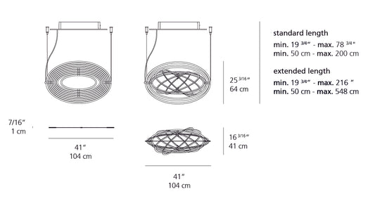 Artemide Copernico Suspension LED Silver Grey Extended 15Ft 1623018A-EXT