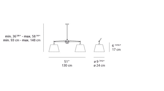 Artemide Tolomeo Double Shade Suspension with 10" Diffuser Parchment TOL1000
