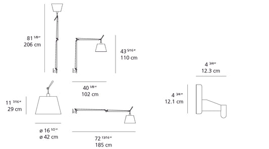 Artemide Tolomeo Mega Wall with 17" Diffuser Fiber Aluminum TLM1105