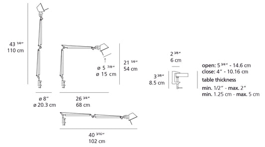 Artemide Tolomeo with Shade Aluminum/Fiber with Clamp TLS0008