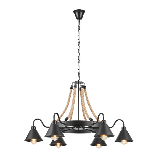 Steel and Ropes 6 Light Chandelier Black by Finesse Decor
