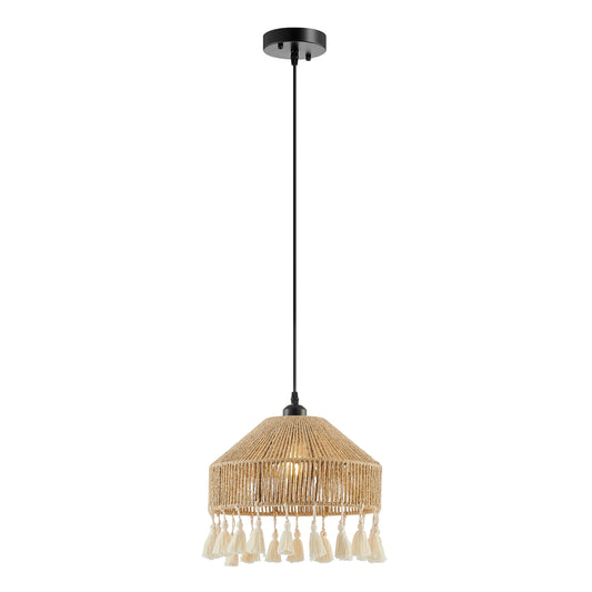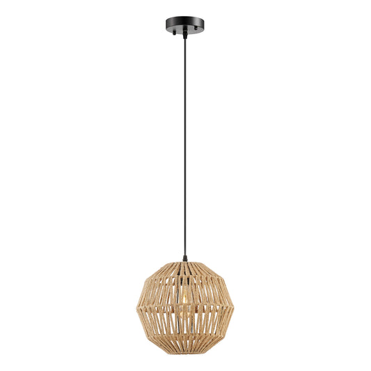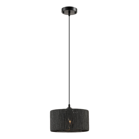 Iron and Ropes 1 Light 11" Diam Pendant Black and Beige by Finesse Decor
