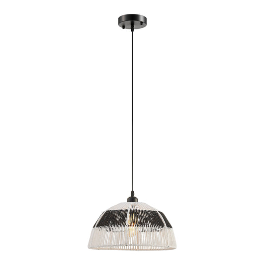 Iron and Ropes 1 Light 14" Diam Pendant Black and Cream by Finesse Decor