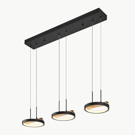 Chandelier Linear Satin Black & Wood - Finesse Decor CH-M25-5B