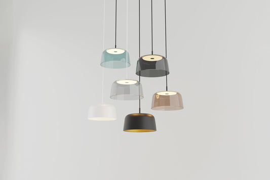 Yurei Circular 3 Pendant Light Matte White 14" Acrylic Shade Blue by Koncept