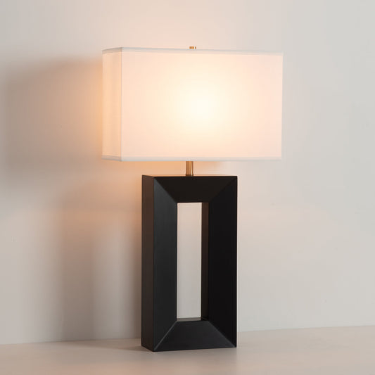 Laurel Table Lamp Ebony Wood Weathered Brass White Linen Shade by Nova California