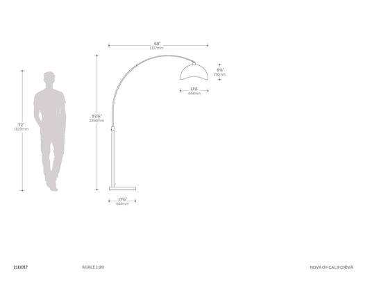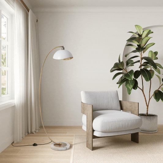 Luna Bella Arc Floor Lamp -White Gold Leaf Shade by Nova California