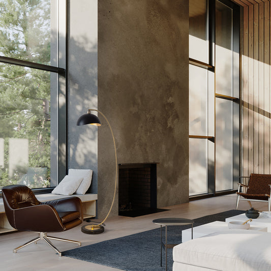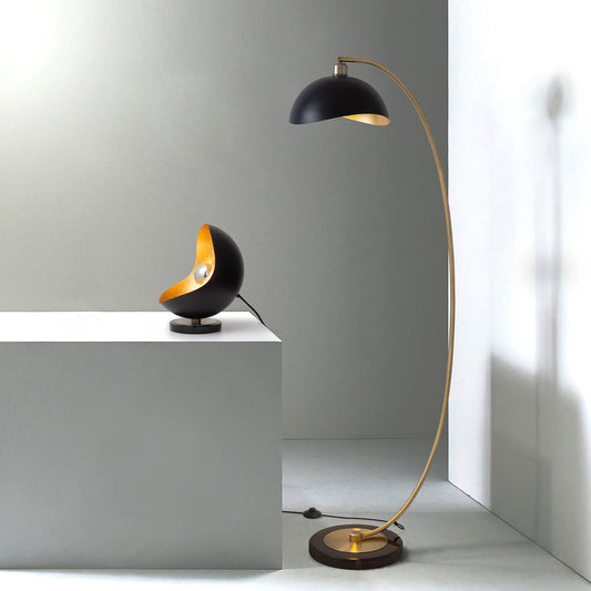 Luna Bella Chairside Arc Floor Lamp 60" Weathered Brass Matte Black Gold-Leaf Shade by Nova California