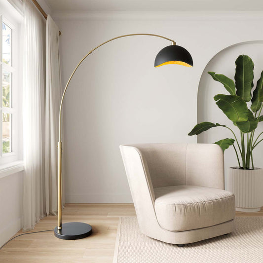 Luna Bella Arc Floor Lamp 92" Weathered Brass Matte Black Gold Leaf Shade by Nova California