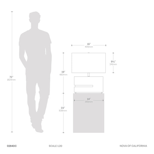 Trina Table Lamp Ebony Wood Weathered Brass White Linen Shade by Nova California
