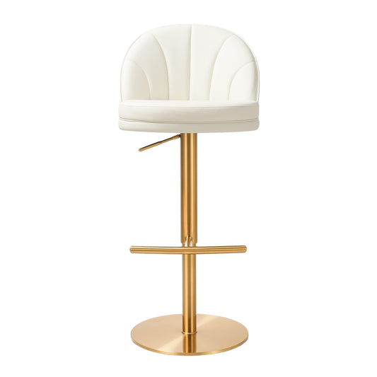 Venus Cream Performance Vegan Leather and Gold Adjustable Swivel Stool by Tov Furniture TOV-D68827