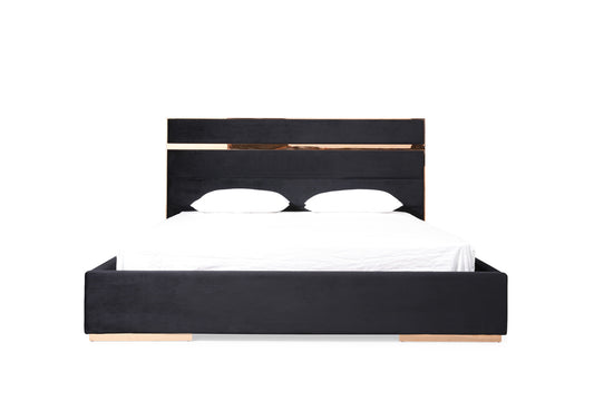 Nova Domus Cartier Modern Black Velvet and Rosegold Bed