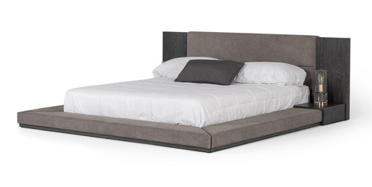 Eastern King Nova Domus Falcor Modern Grey Fabric and Walnut Veneer Bed