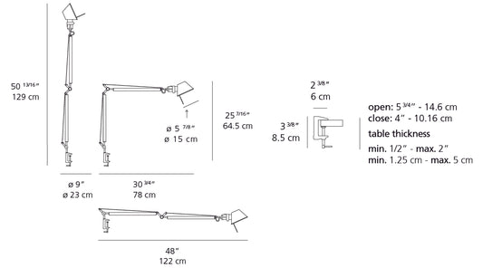 Artemide Tolomeo Classic Aluminum with Clamp TOL0015