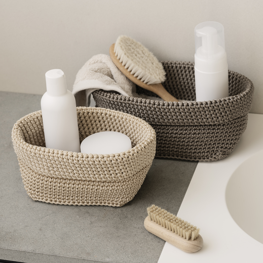 Tela Crochet Storage Basket Set Bark | blomus Germany