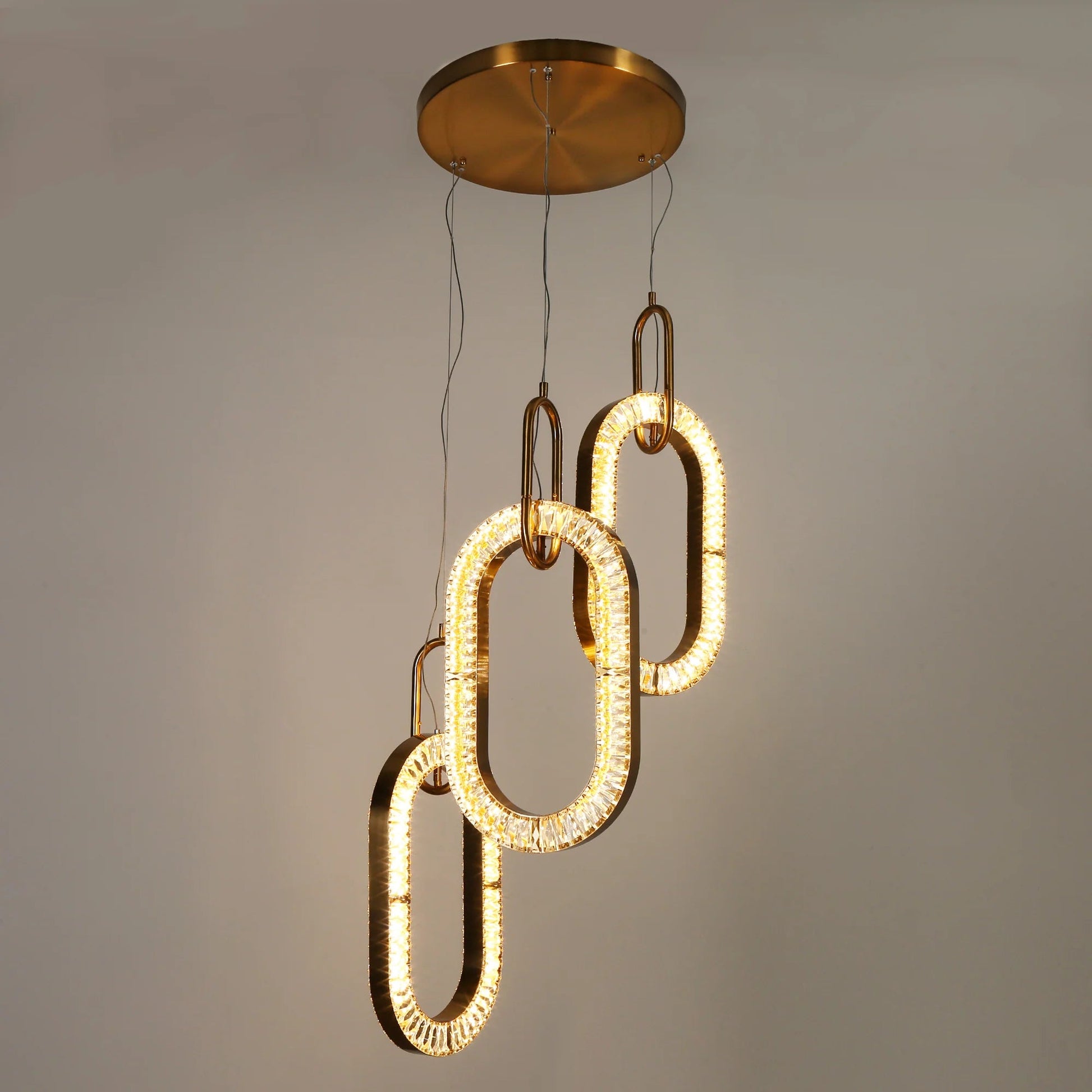 This stunning 3-shade crystal chandelier is a showstopper, designed to transform your living space with its captivating beauty and modern flair. Featuring a cascading waterfall of sparkling crystals and a sleek brass finish, this chandelier adds a touch of luxury to any room. Perfect for those seeking a statement piece with lasting brilliance, this chandelier is both glamorous and energy-efficient thanks to its integrated LED lights.