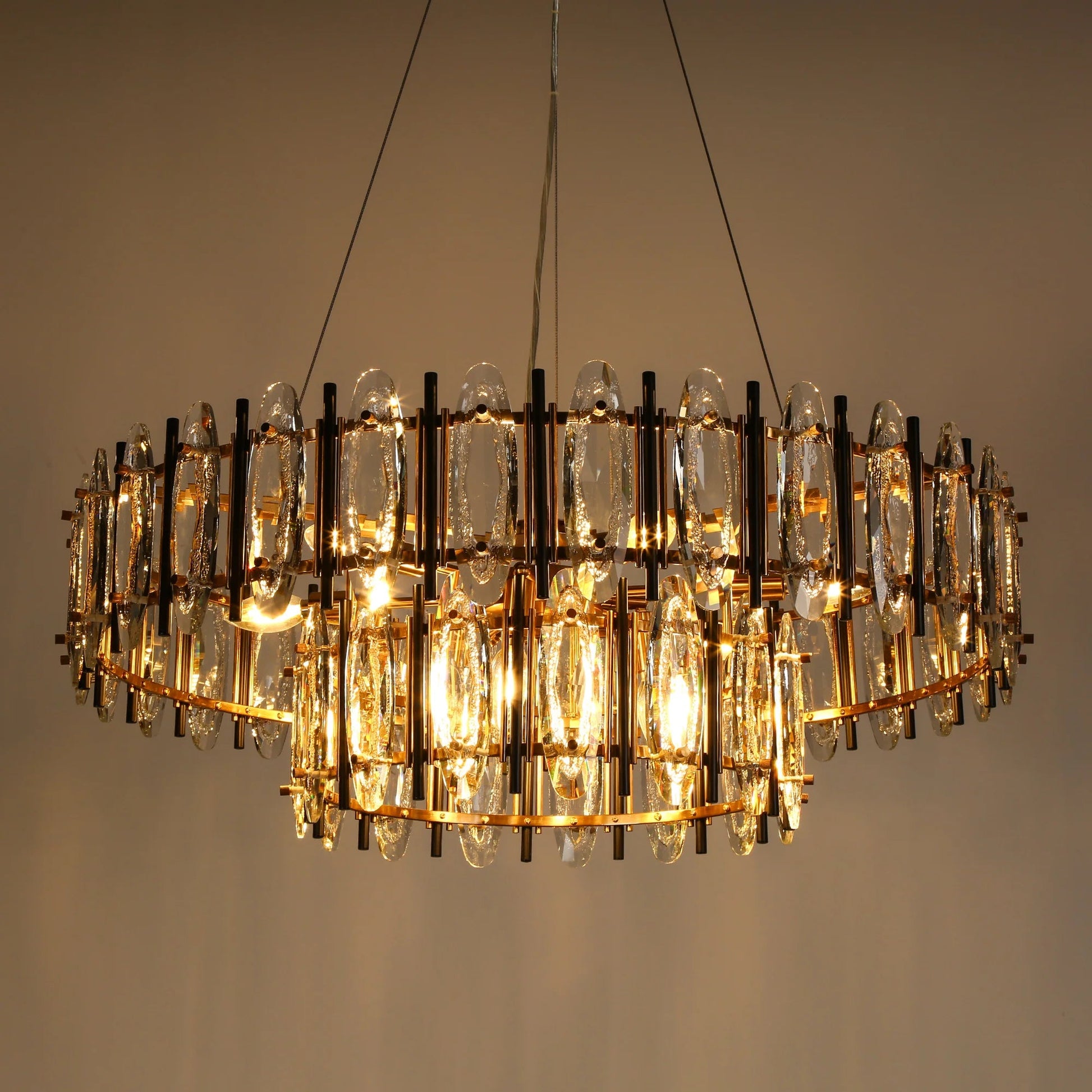 • Two-Tiered Glamour: The two-tiered design adds dimension and grandeur, making a bold statement in any space.