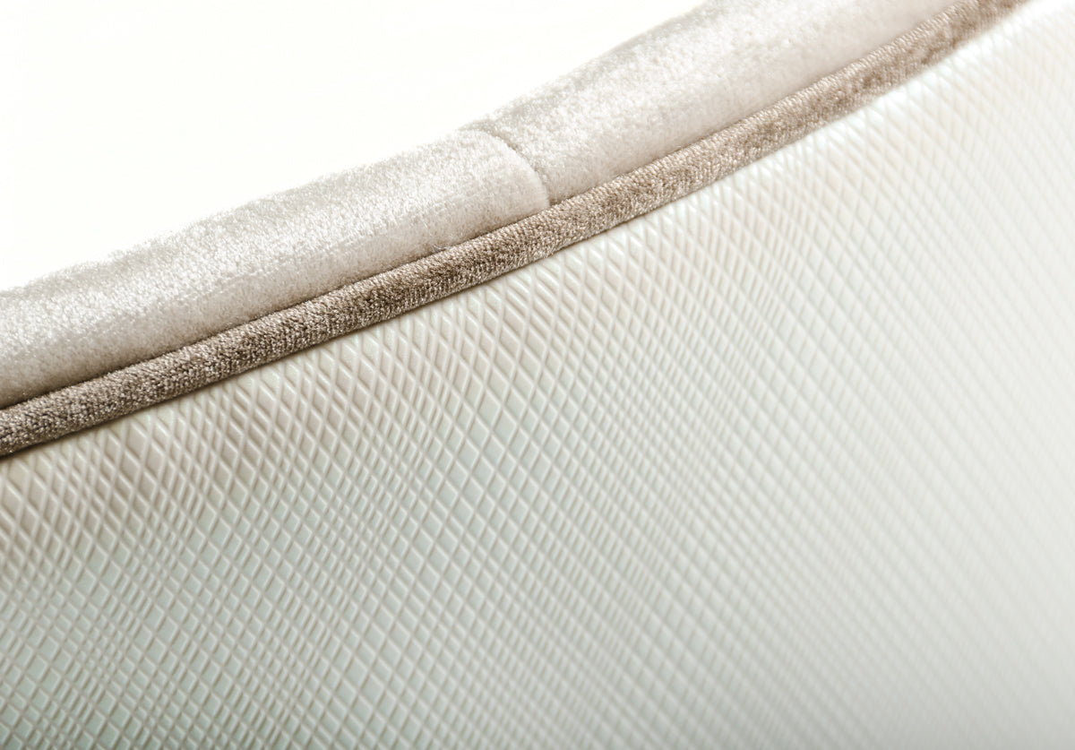 • Upholstered In Cream Velvet Fabric