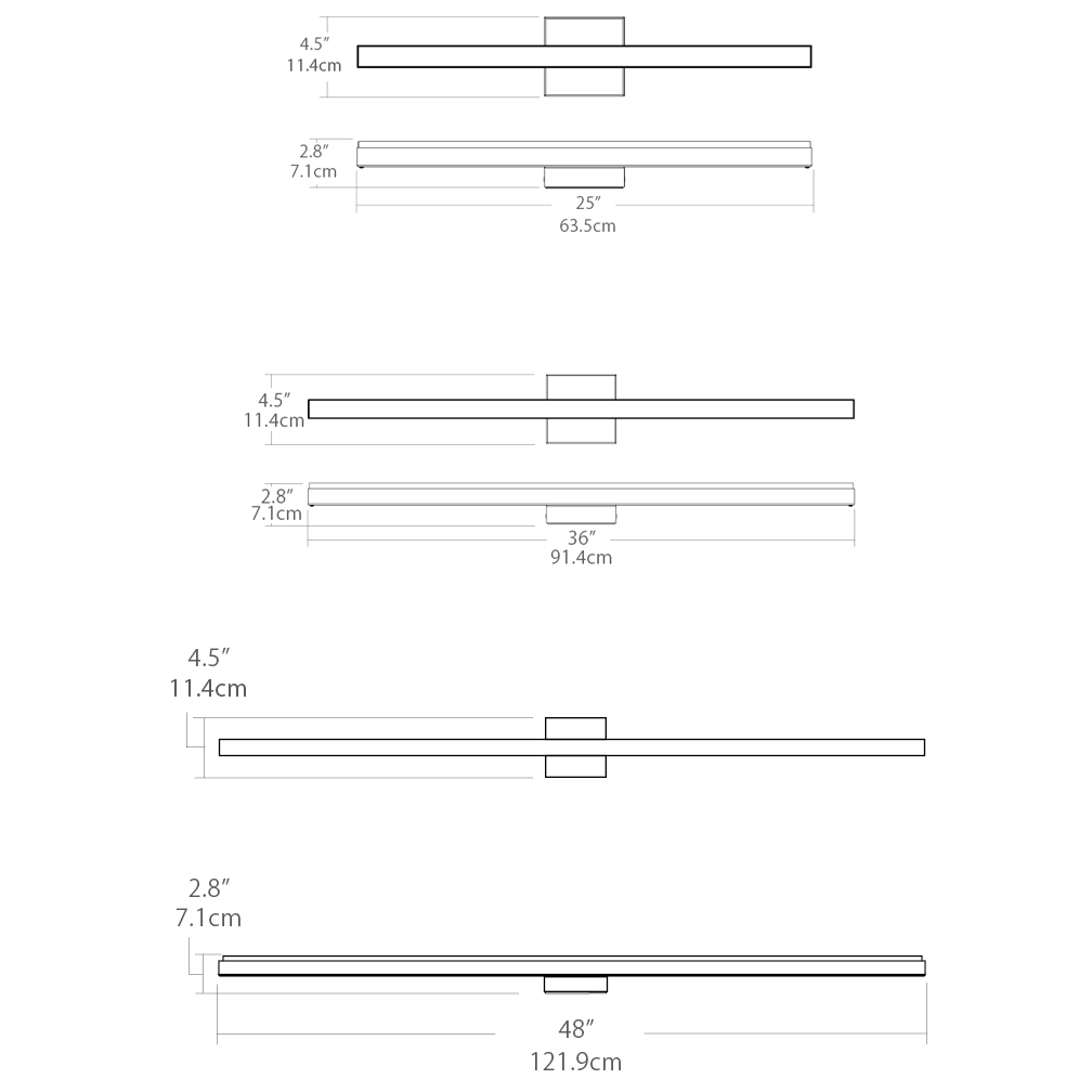 • Vanity can mount vertical or horizontal, wall or ceiling