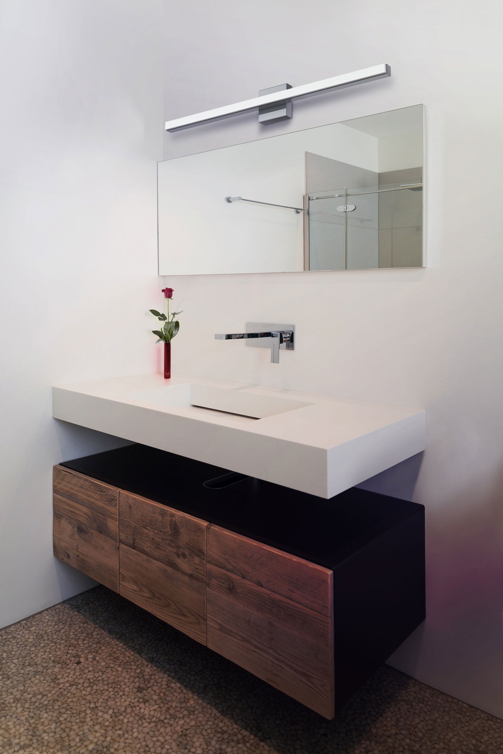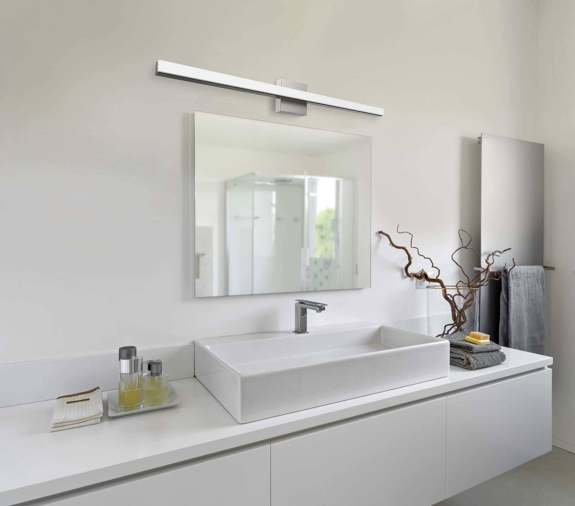 Nano vanity lights represent extraordinary value. The super-efficient LED light source inside the minimal geometric form illuminates the white frosted acrylic diffuser.