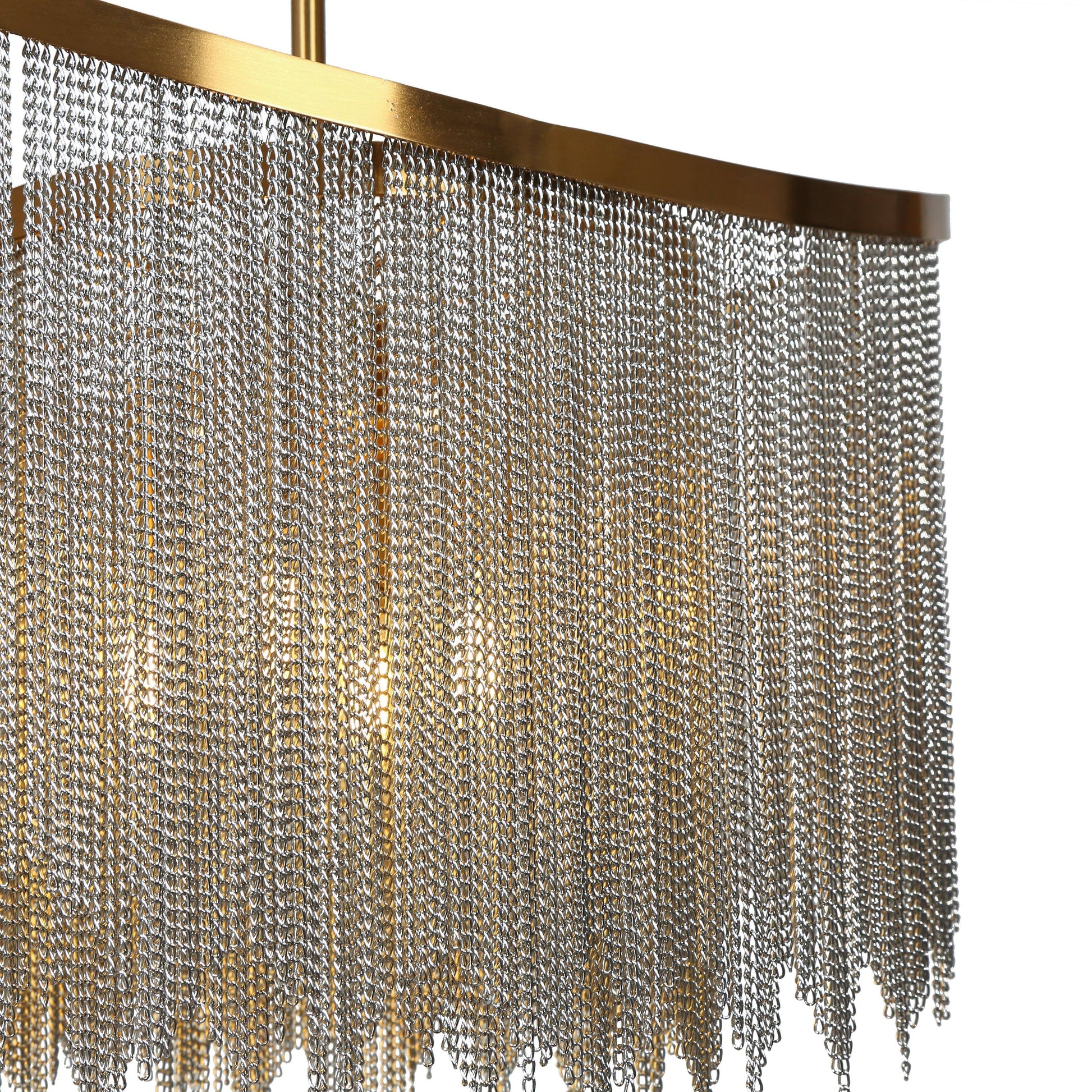 Transform your space with the captivating allure of the Shoebill Empire Chandelier. This stunning fixture boasts a unique design inspired by frozen rainfall, featuring hundreds of slender metal rods cascading from a sleek brass canopy. The result is a mesmerizing display of light and shadow that adds a touch of drama and sophistication to any room.