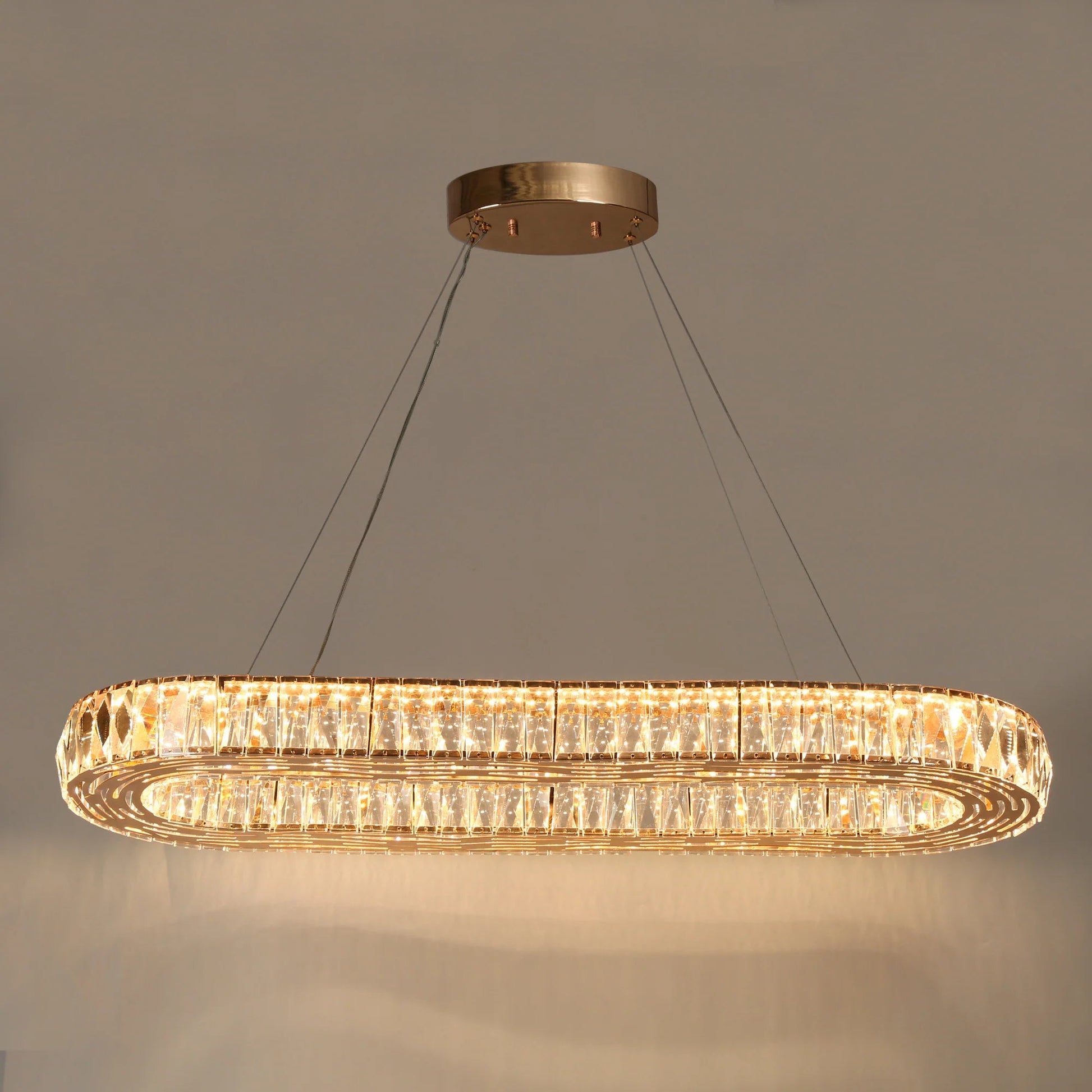 Introducing the Brusmogan 1-Light Glam Island Light, a captivating blend of mid-century modern design and contemporary elegance. This exquisite pendant light features a sleek gold rectangle frame adorned with hand-set faceted crystals, creating a mesmerizing display of light and sparkle. Suspended from slender wires, the Brusmogan island light serves as a dazzling centerpiece above kitchen islands, counters, and dining areas.