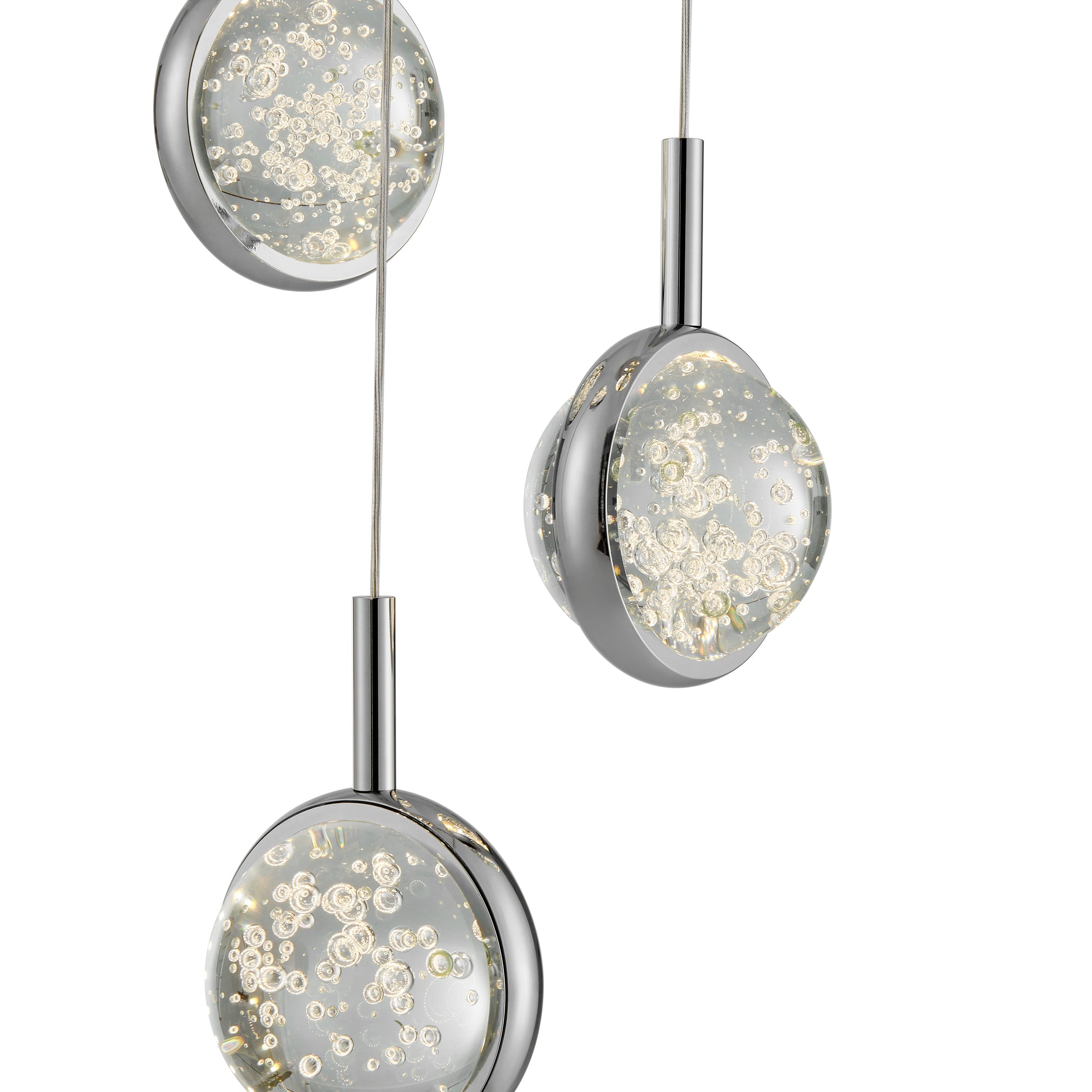 The Bubbling Glow Round Chandelier brings a captivating sparkle to your space, with its chrome finish and sleek aluminum structure. Each of its elegantly crafted glass shades houses integrated LED lights that illuminate mesmerizing bubbles inside, creating a dynamic interplay of light and texture. Fully dimmable, this chandelier offers adjustable ambiance to suit your mood. Its hanging length is customizable, allowing you to personalize the fixture for a perfect fit in any room. Ideal for modern interiors, this chandelier adds an artistic touch while delivering efficient and sophisticated lighting.
