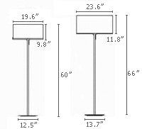 Dimension: 12.5 " D (base) x 19.6" W x 9.8" H (shade), 60.2" Overall Height