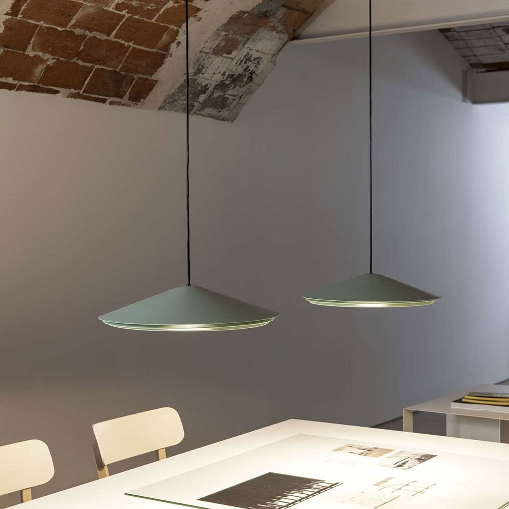 The Colette Pendant Light features a metal structure in black, white, terracotta or mint green lacquer finish.