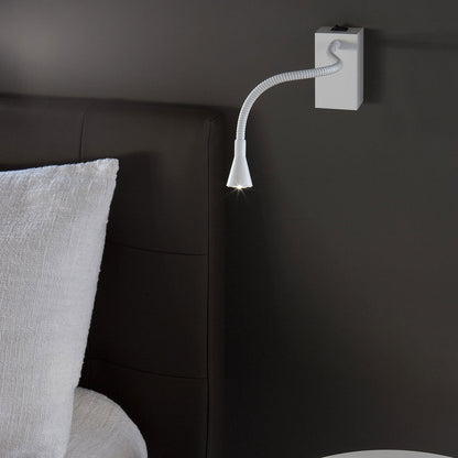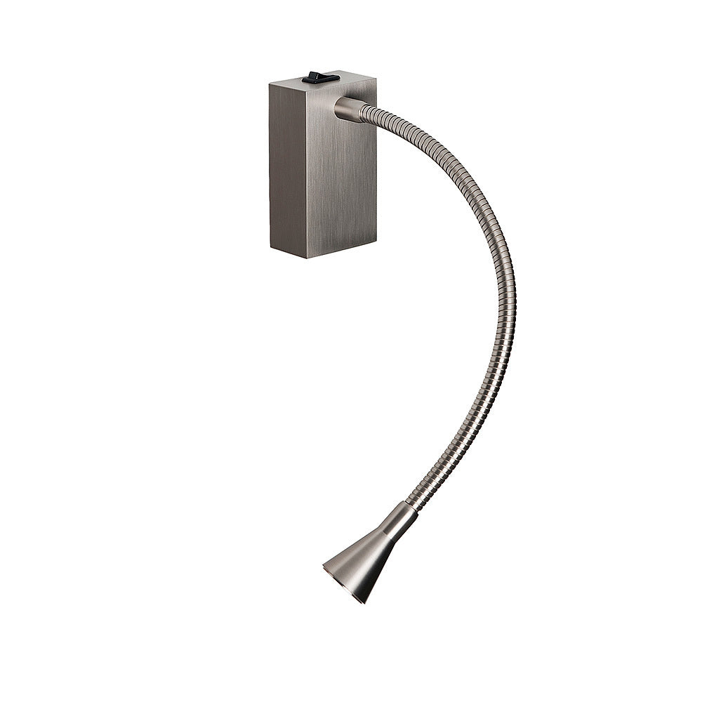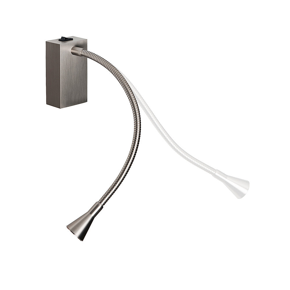 Evo is a metallic LED wall lamp available in white, chrome, black, or matte nickel finish. Features switch on the base.