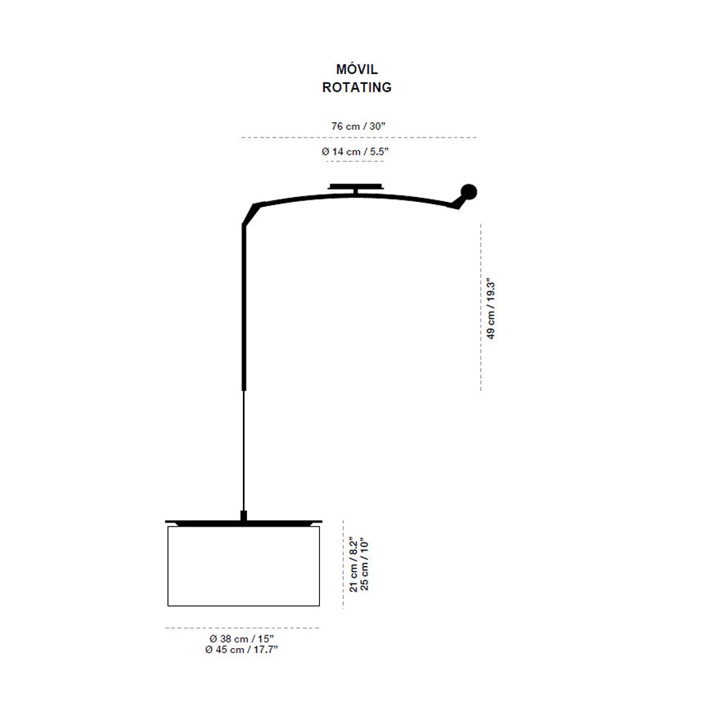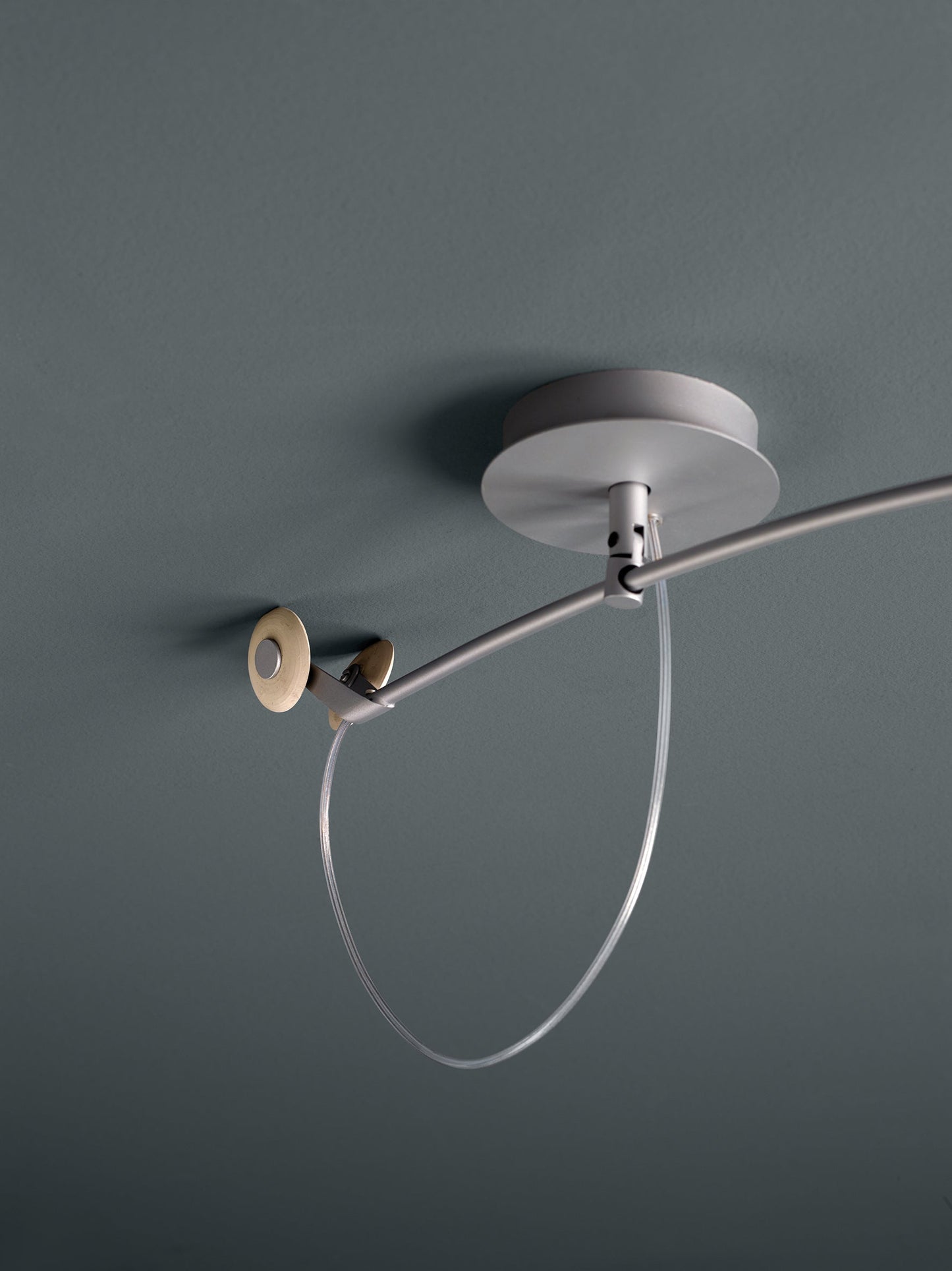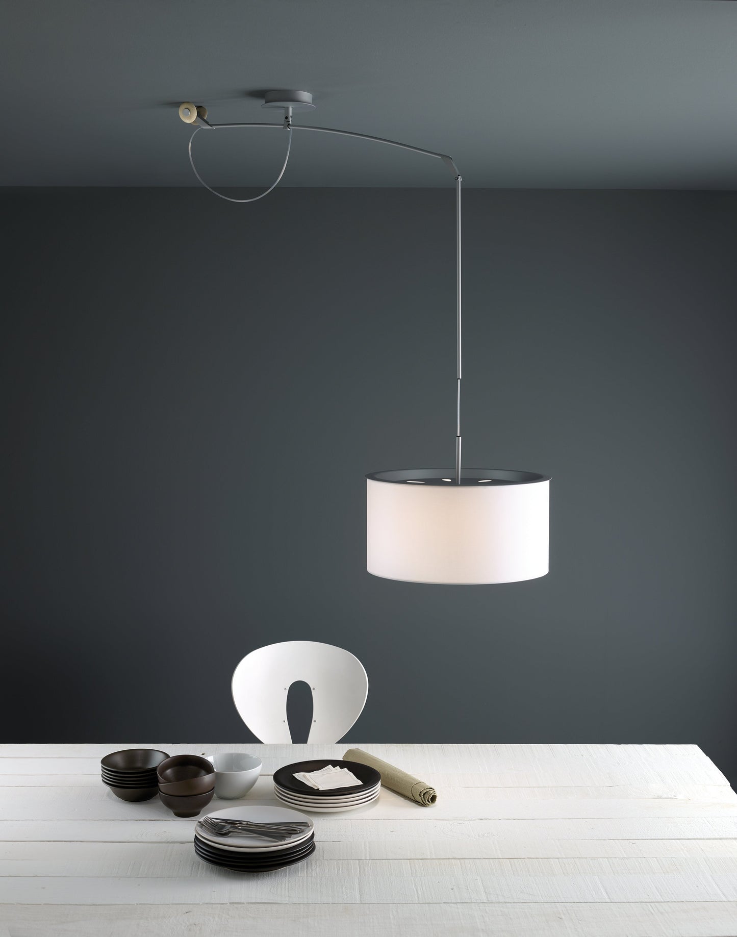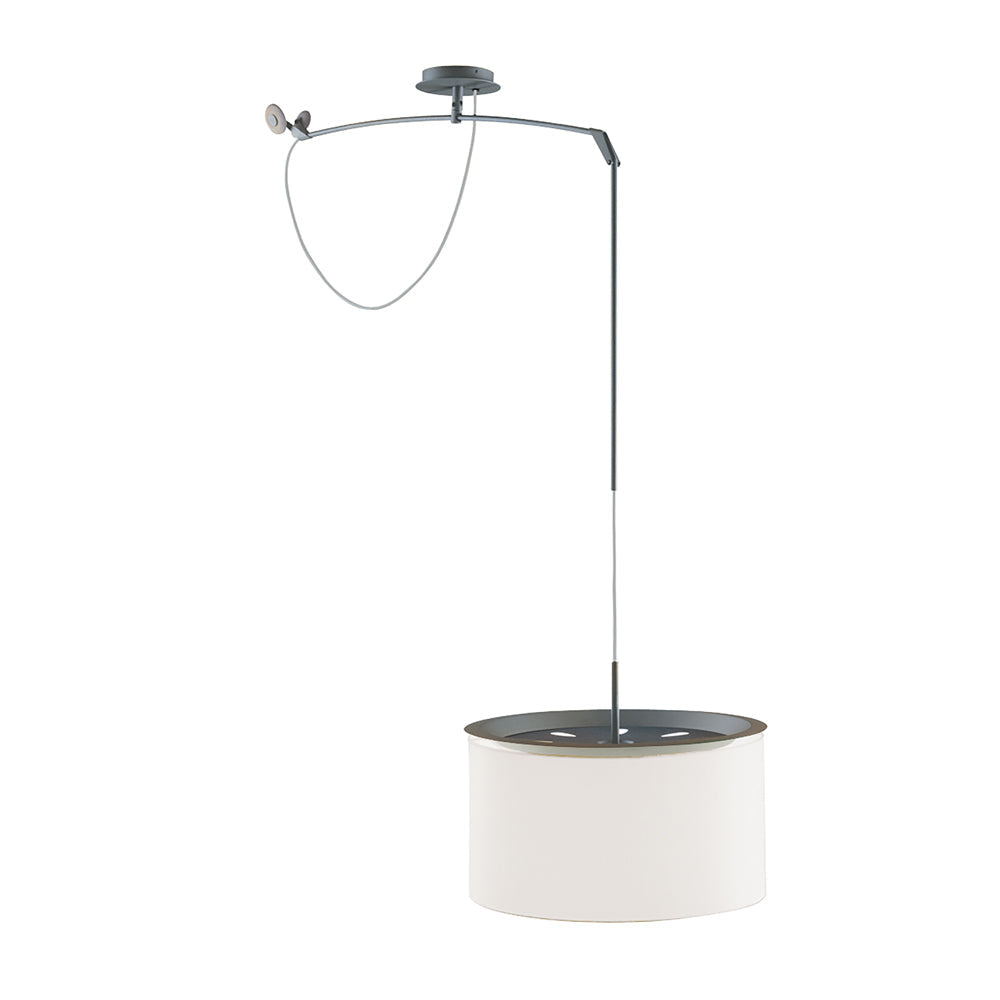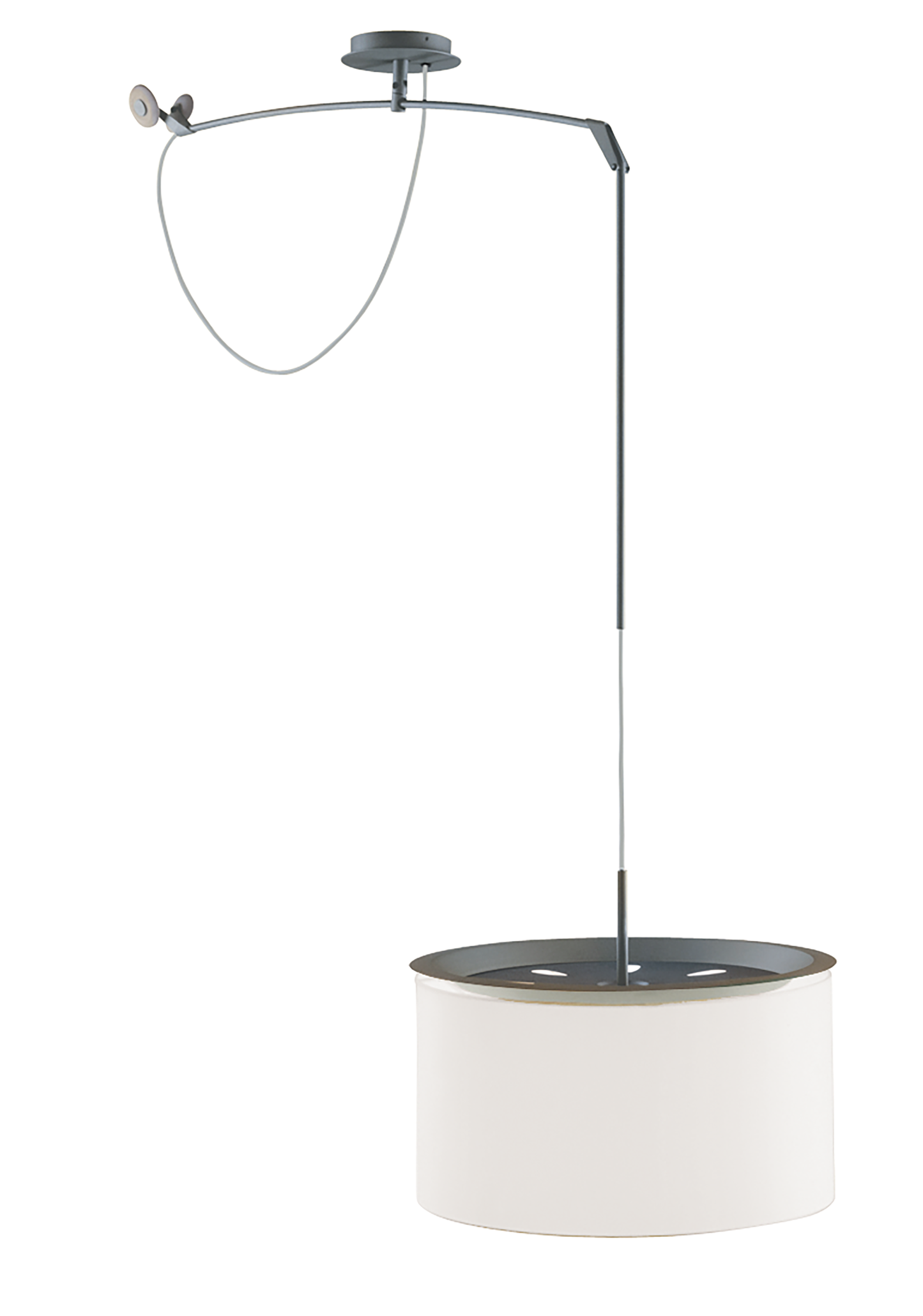 Finger Mobile is a suspension lamp with moving a arm. The moving arm allows the lamp to move in a radius of 30 inches and has an angle of turn of 360¬ļ. Equipped with 8 feet of cable. Features a bottom diffuser.