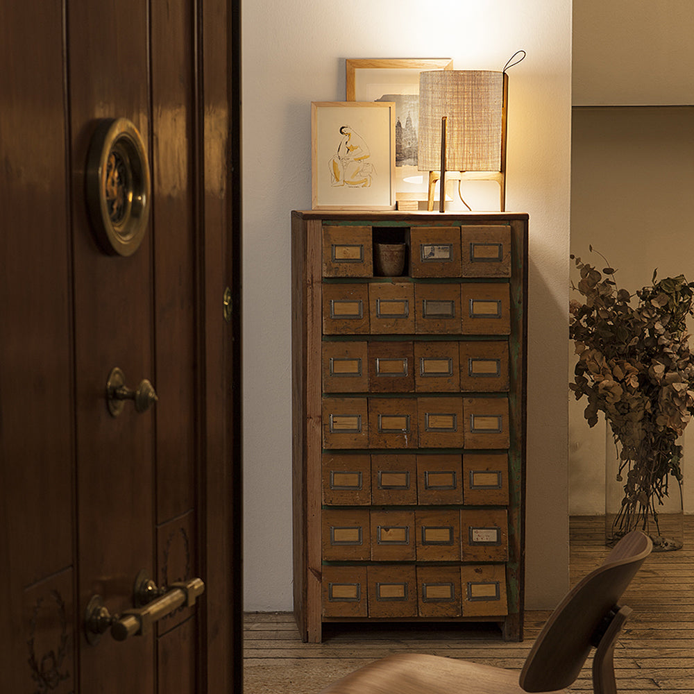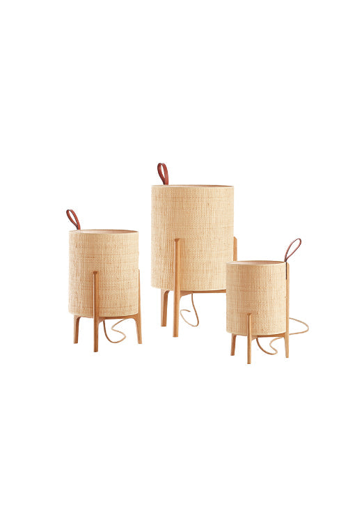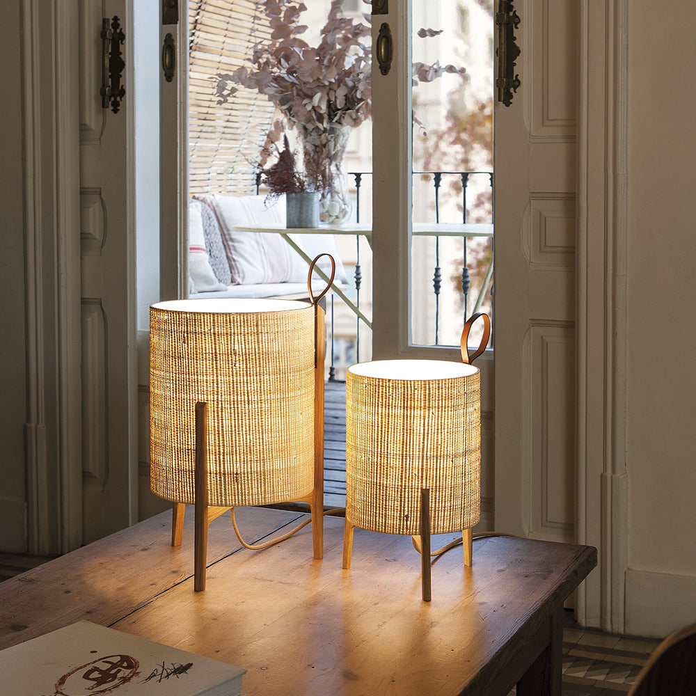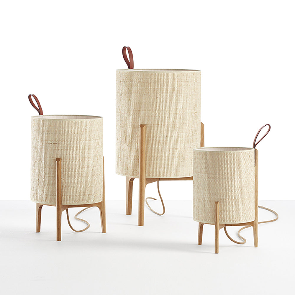 With its oak wood frame, exuding rustic charm and durability, and shades crafted from natural Saguran fiber and linen, this lamp combines artisanal craftsmanship with contemporary aesthetics. Designed by renowned artist Gabriel Teixidó, the Greta Lamp is available in three sizes to suit varying spatial requirements.
