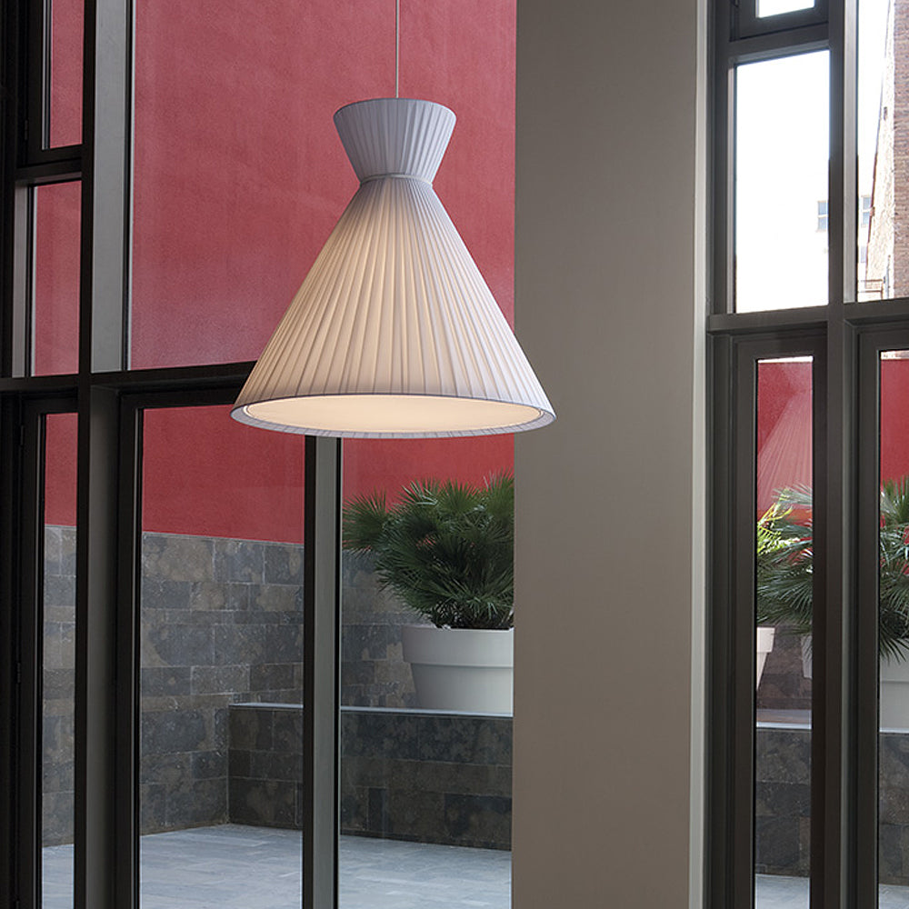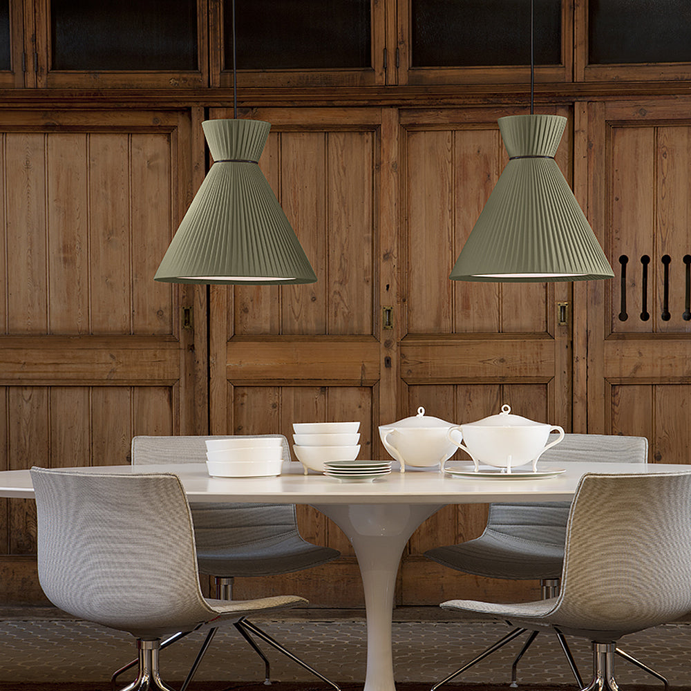 Designed by the esteemed Nahtrang Disseny and meticulously manufactured in Barcelona, Spain, each Mandarina Pendant Light is a testament to superior craftsmanship and timeless design. The shade, adorned with intricately ribboned silk, conceals a white polycarbonate diffuser, ensuring a soft, diffused illumination that enhances any space with its understated allure.