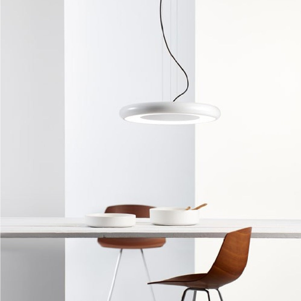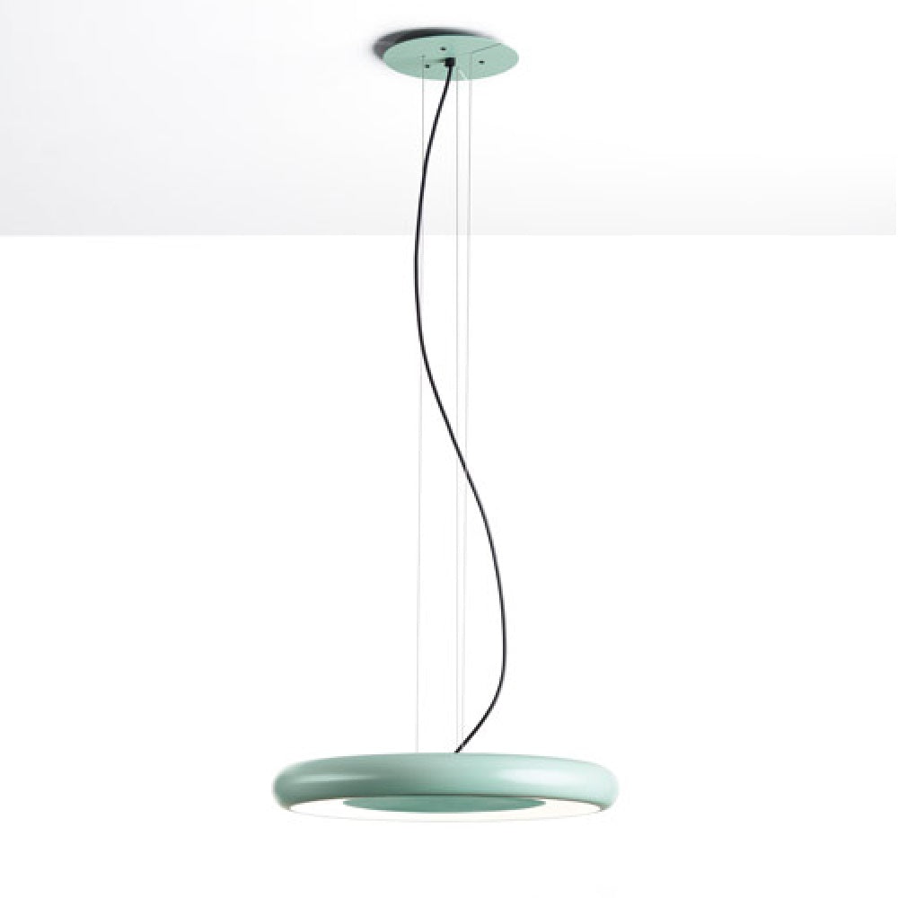 The Sky Pendant Light features a metal structure with glass diffuser. Available in white, black or mint green finish.