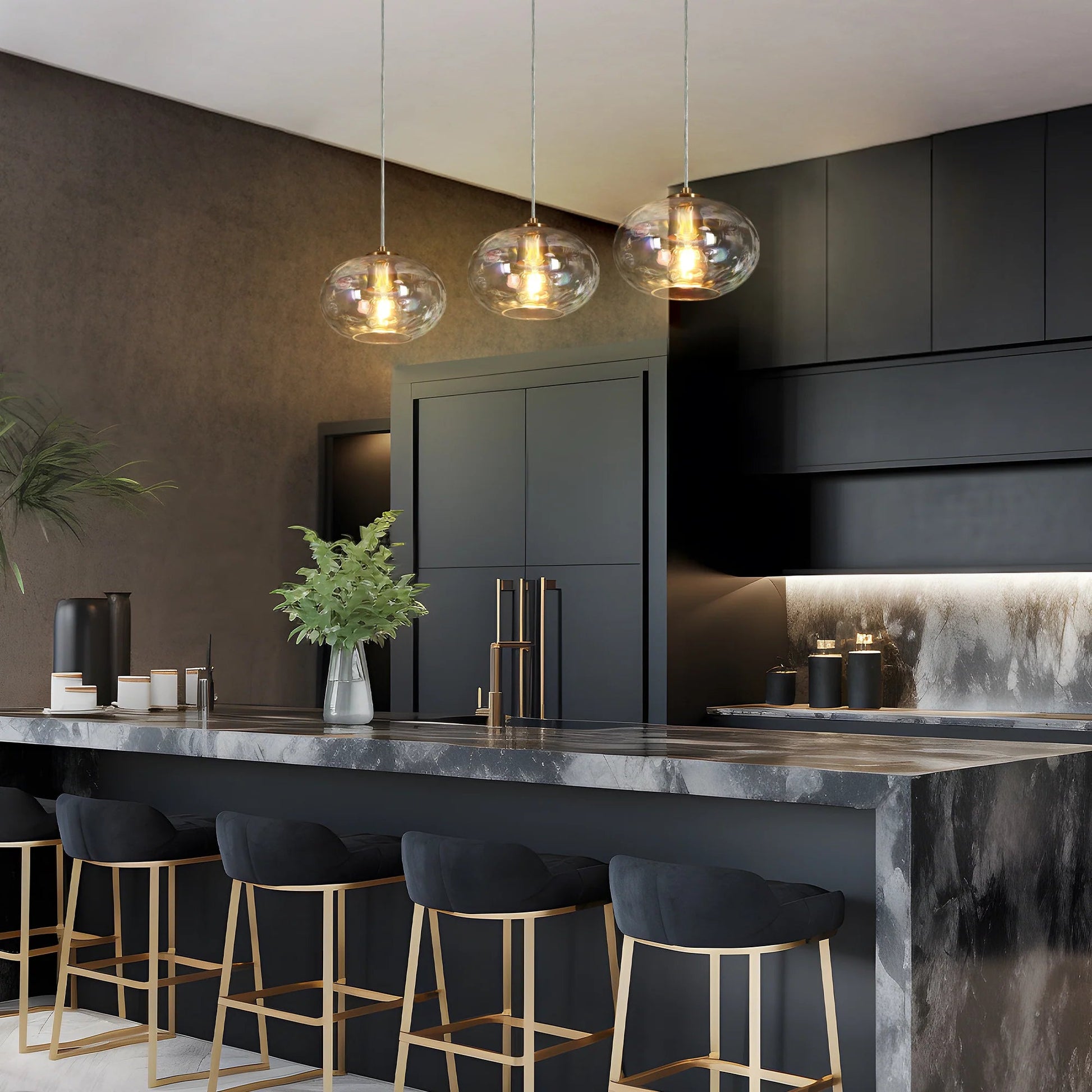 • Hand-blown iridescent glass globes: Each globe is unique, with a captivating rippled texture that diffuses light beautifully.