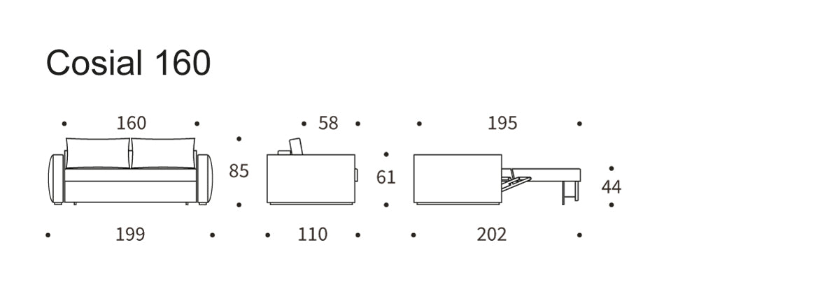Dimensions Cosial Sofa Bed, Queen