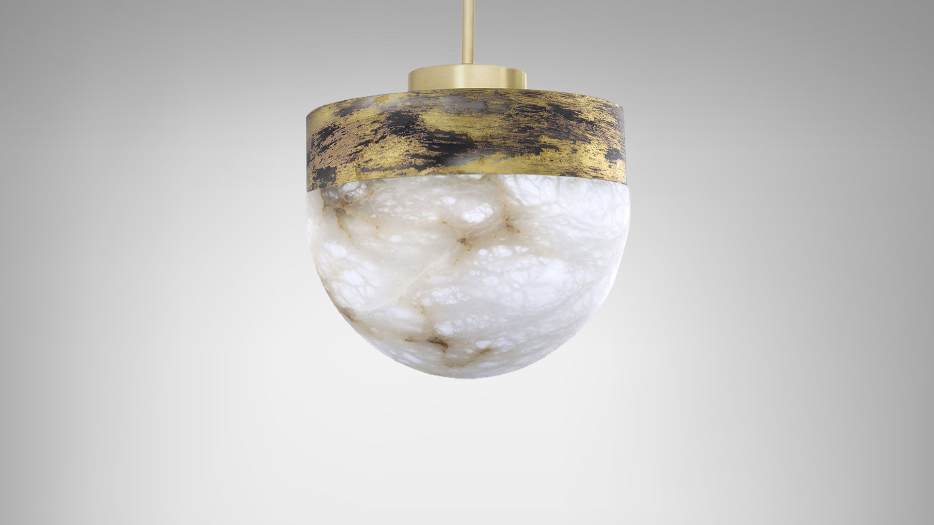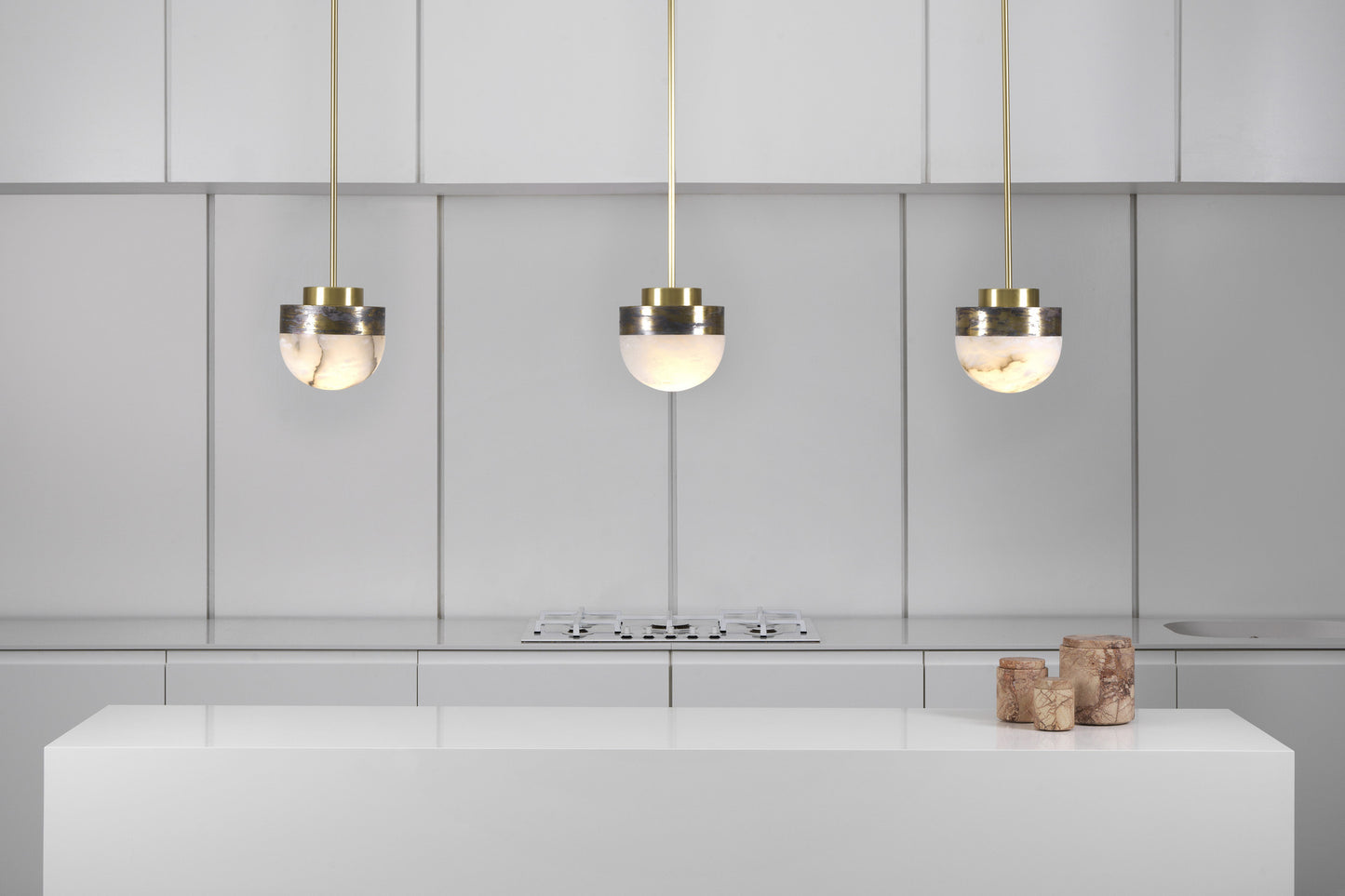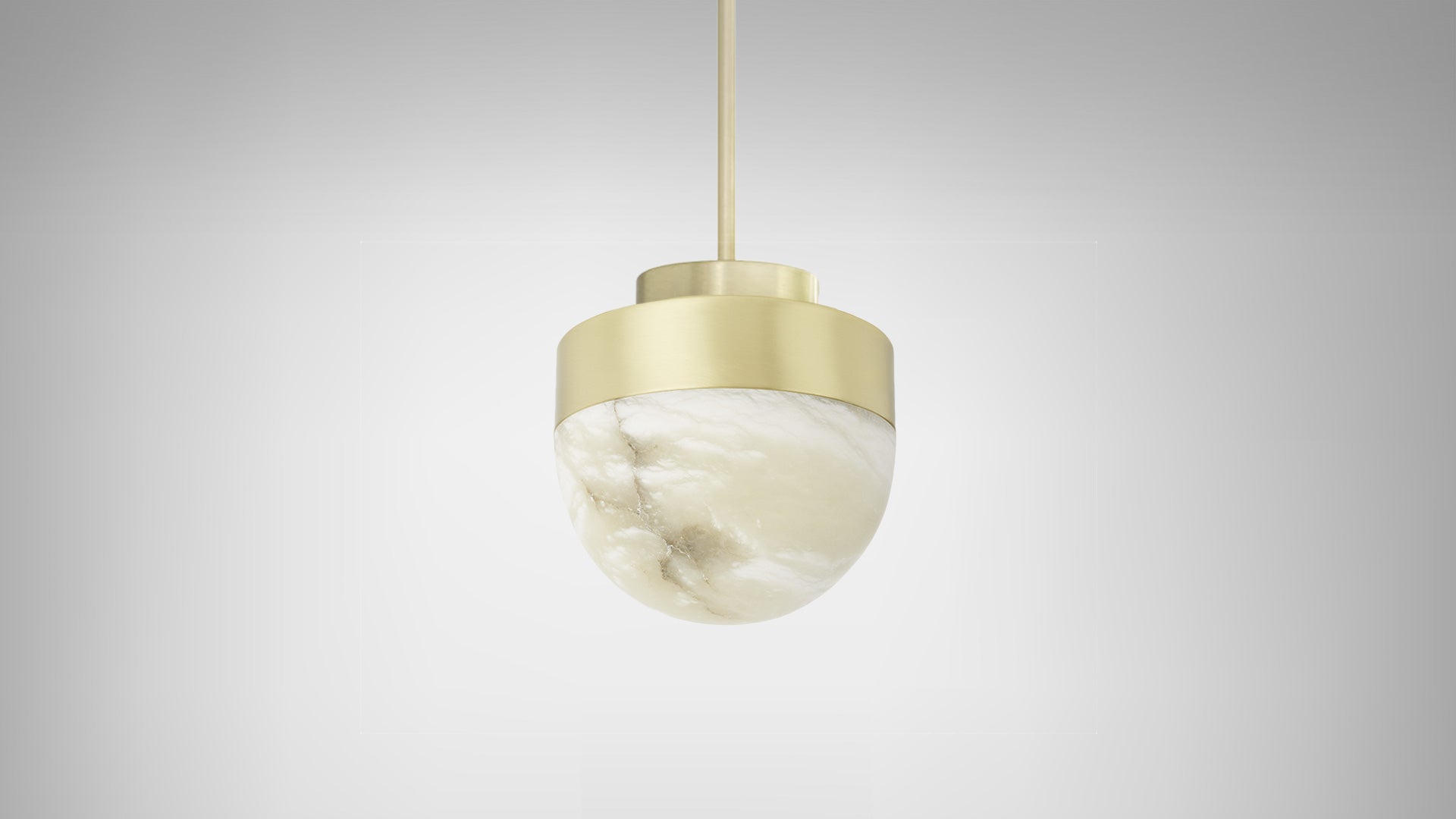 LUCID is a refined yet striking pendant light that features a dome of honed alabaster, suspended from the ceiling by minimal, engineered metalwork. The LED emanates light from beneath the surface of the natural stone, highlighting the unique veining. Casting a warm, ethereal glow, the light source can be dimmed to alter the illumination effect to suit your specific need. The simplicity of this contemporary pendant lends itself to a composition of multiples, especially in groups of three over a kitchen island, dining table or bar. For a modern statement, LUCID can also be installed in clusters of different sizes and finishes.