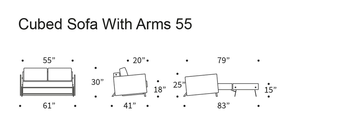 Dimensions of the Compact Cubed Sofa Bed with Arms Full