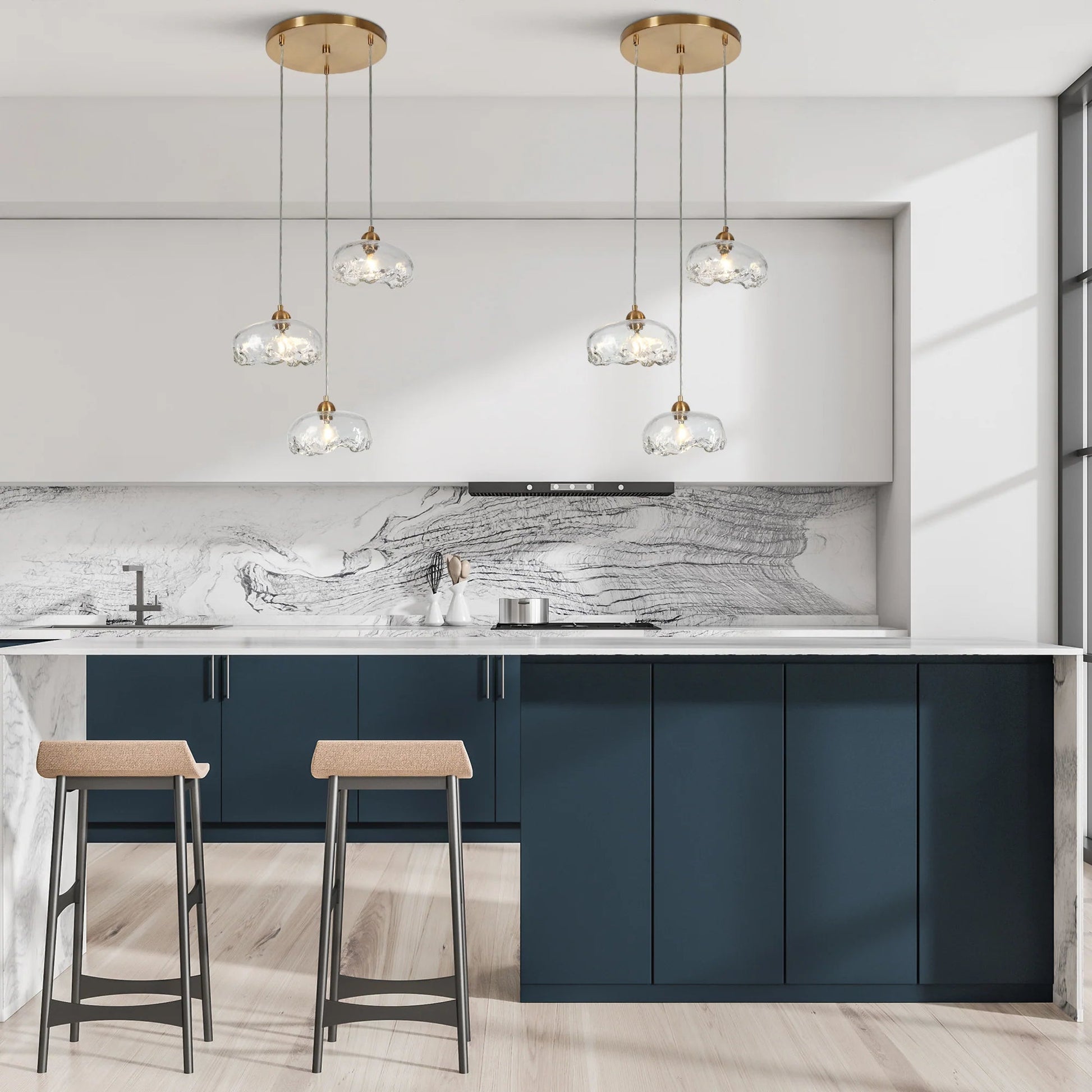 This chandelier seamlessly blends contemporary design with timeless elegance. Its adjustable height and dimmable feature allow you to personalize your lighting experience, while the unique textured glass globes create a captivating visual focal point. Whether you're looking to enhance your dining area, kitchen, or living space, the Ranunculus 3-Light Chandelier is sure to impress.
