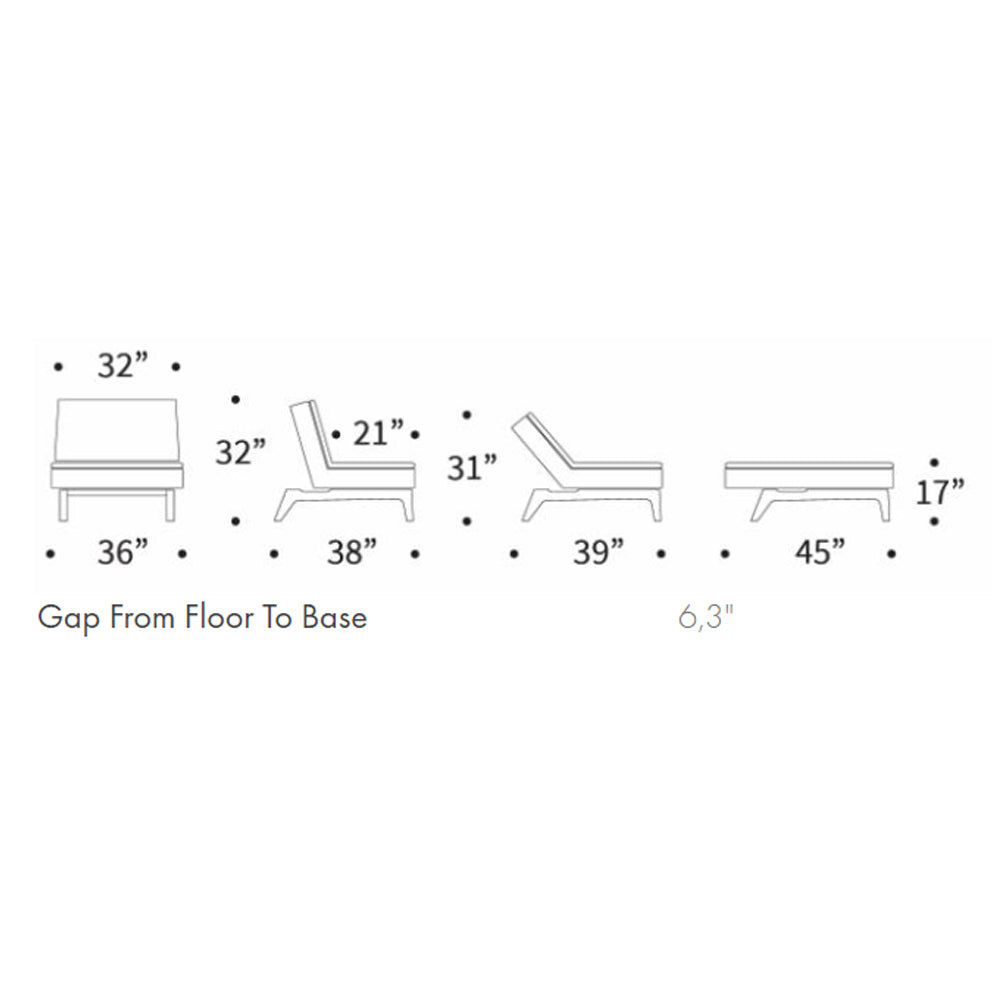 • Lounger size: 36" W x 45" Depth x 17" H