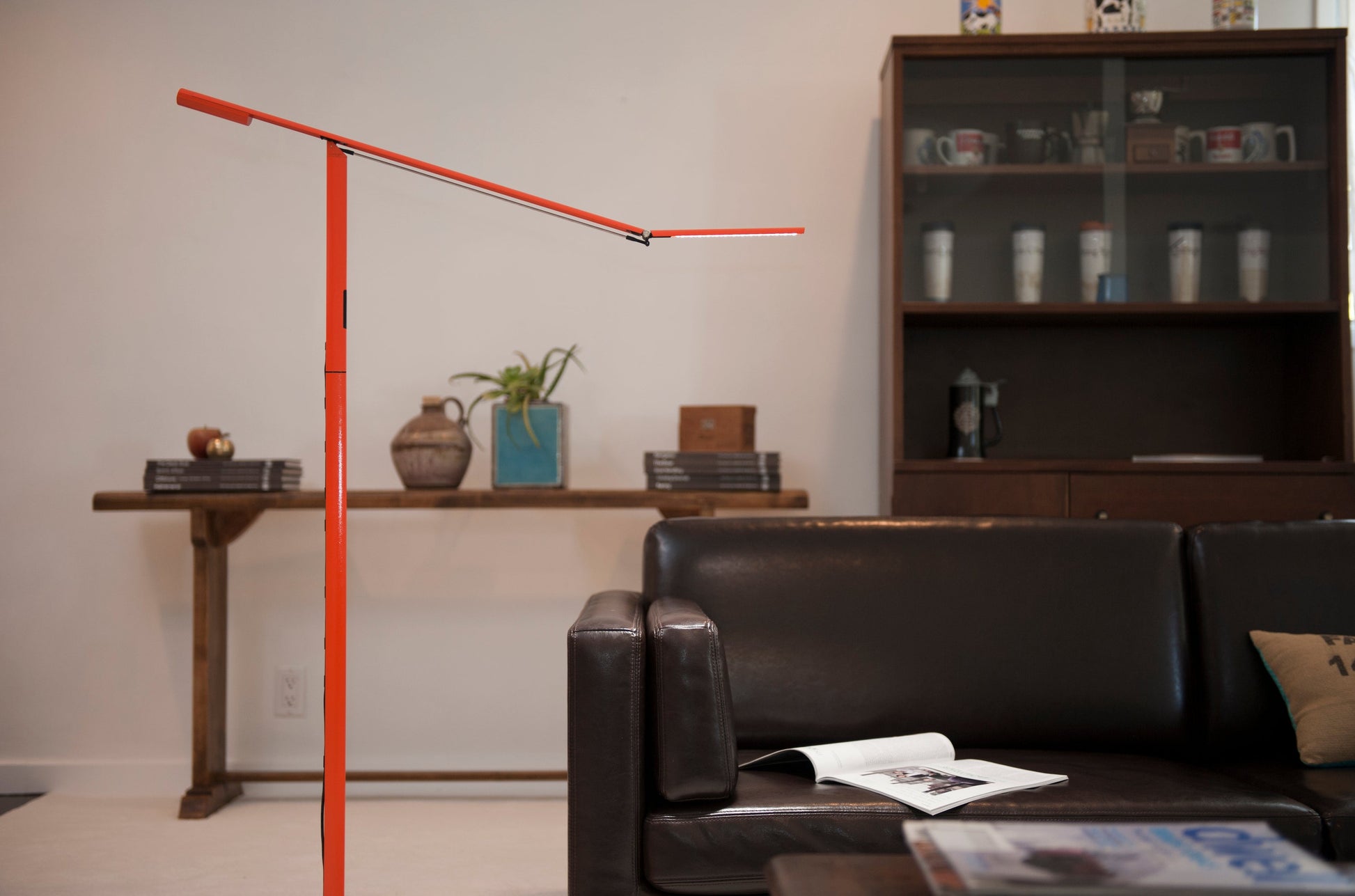 Equo Floor Lamp brings the counterweight of the Equo without the need for a table. Equo Floor Lamp is easily adjusted with just the touch of a finger. Slide your finger along the stem's touchstrip to control brightness and power. The special neck joint maintains the head's tilt as the arm swings up or down. The luminaire head is rotatable up to 180 degrees. Compatible with optional occupancy sensor.