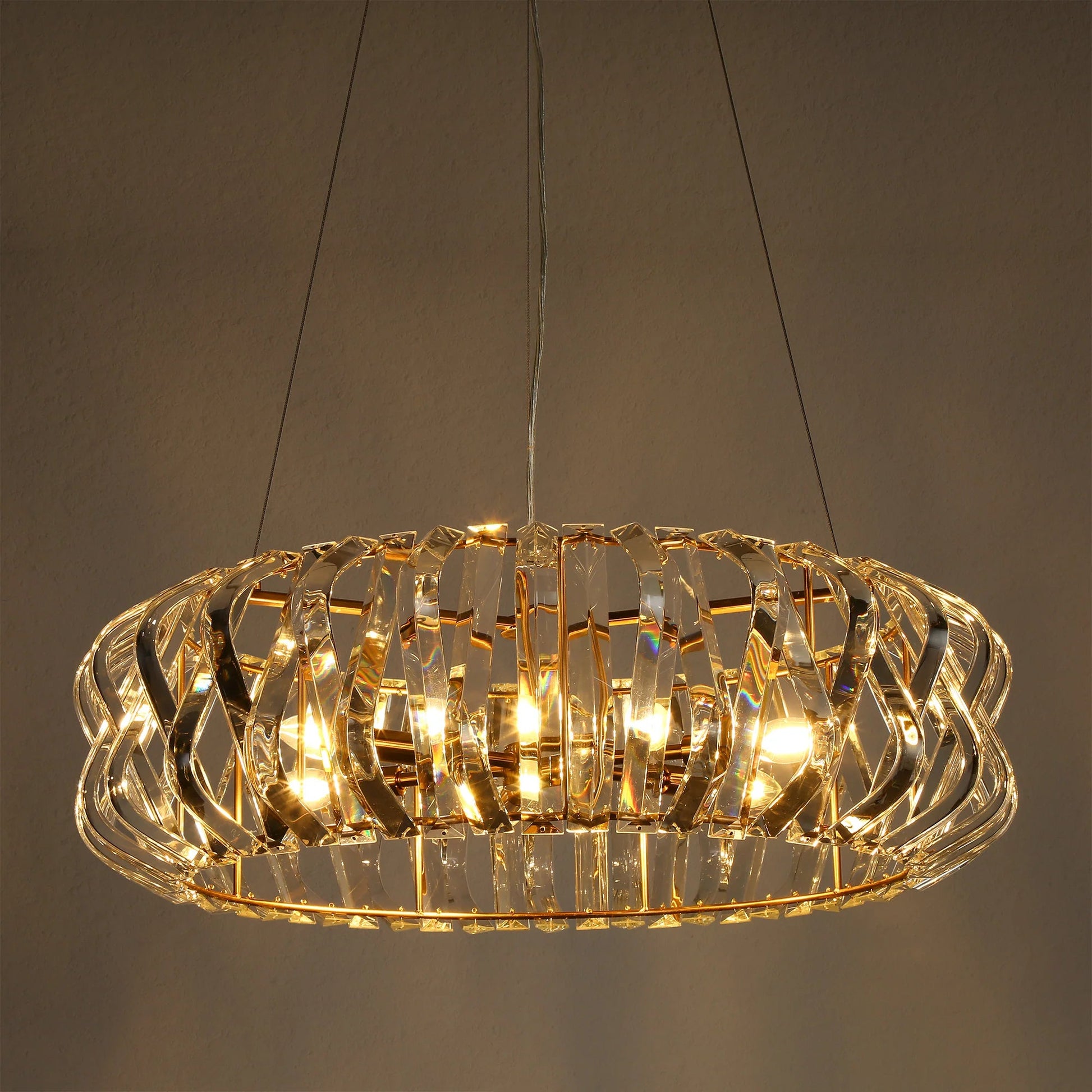 • Glamorous Design: The Eurydamas chandelier boasts a modern drum shape adorned with clear crystals, creating a sophisticated and luxurious centerpiece for your room.