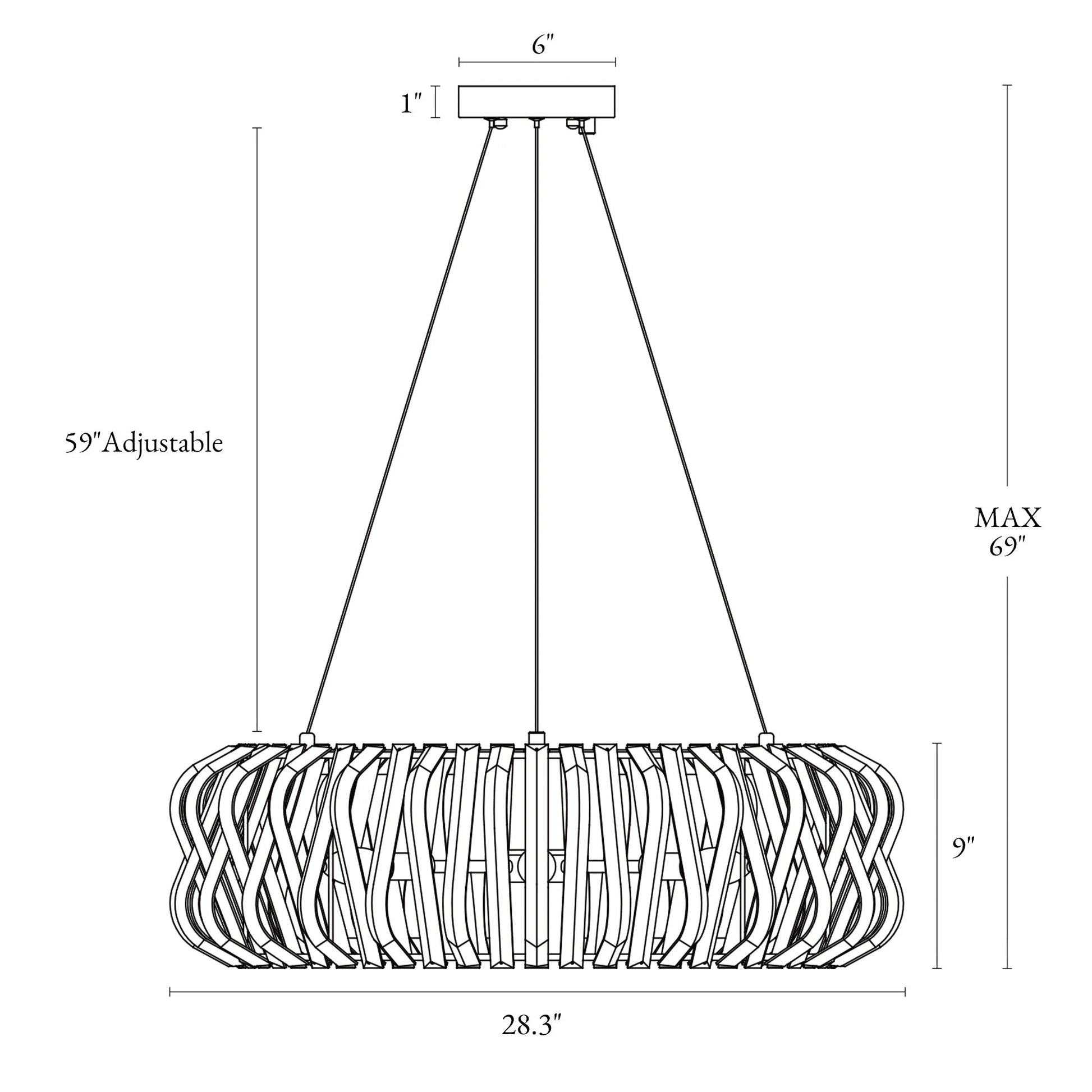 • Adjustable Height: Customize the hanging height to perfectly suit your ceiling and space. The chandelier can be adjusted from a minimum of 11" to a maximum of 69".