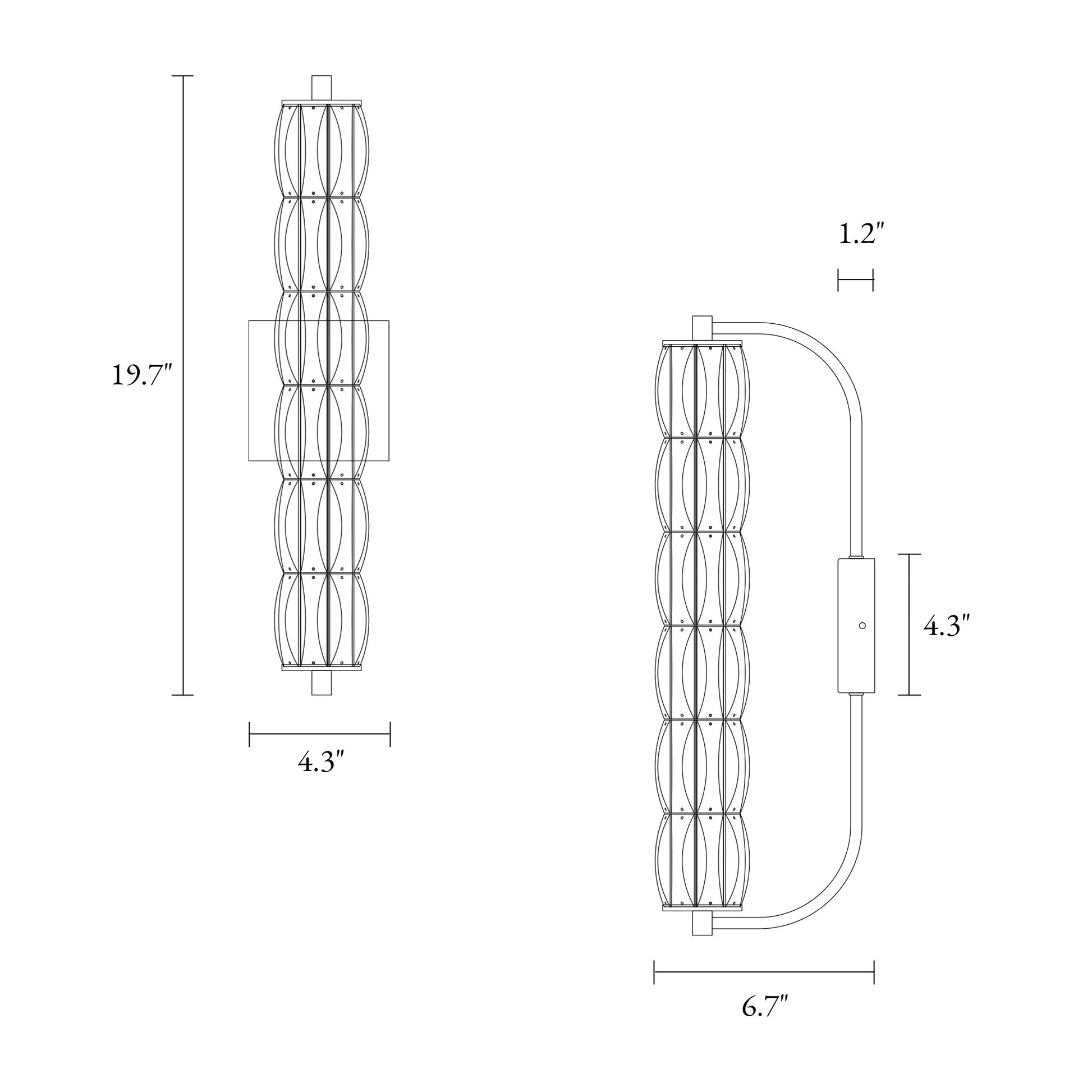 • Dimensions: 4.3"W x 19.7"H x 6.7"D