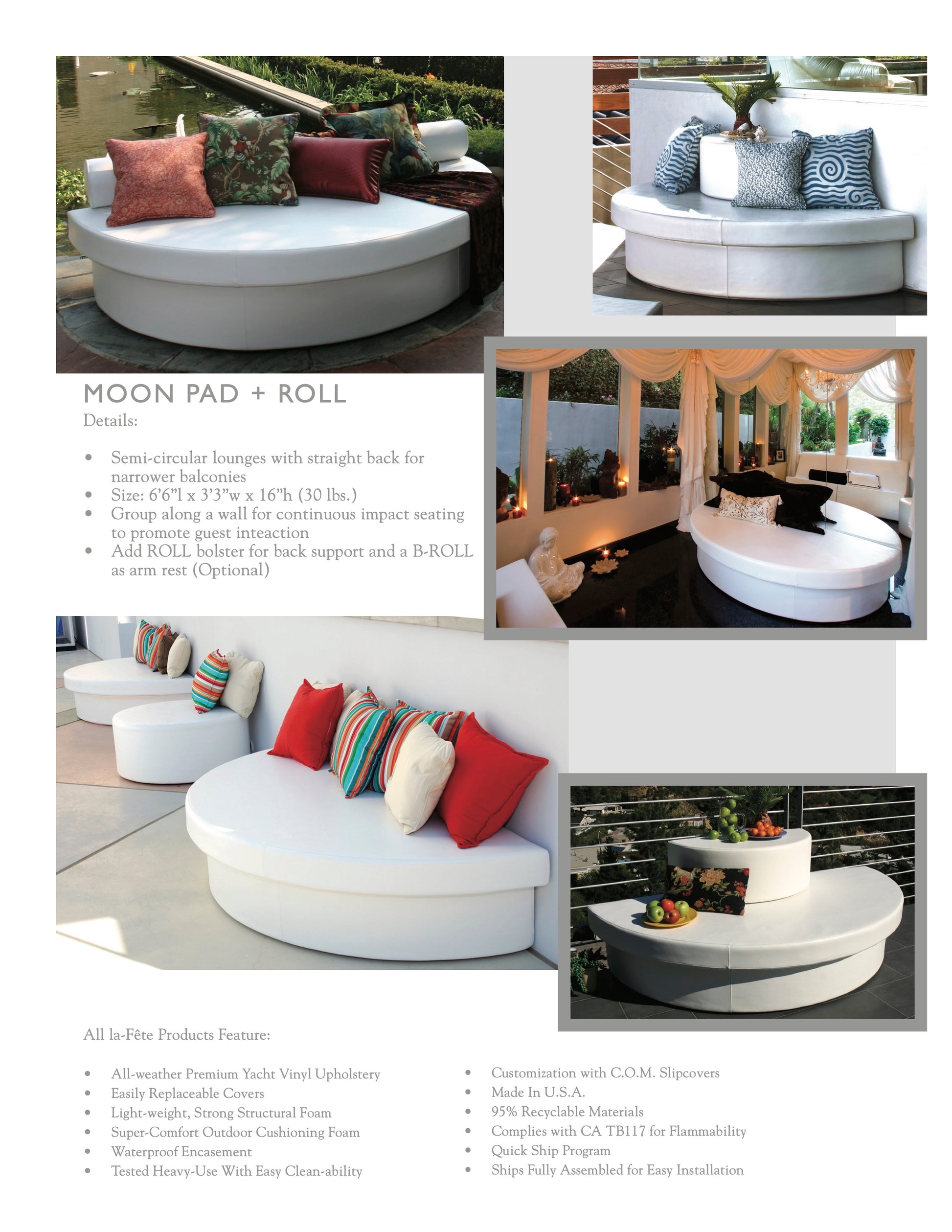 Proudly made in the USA, the Moon Pad reflects La-Fete Design's commitment to quality craftsmanship. The premium yacht vinyl upholstery ensures all-weather durability, allowing you to enjoy your outdoor space without worry.