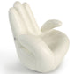 The Estro Sosia Modern White Leather Hand Accent Chair is a charming display of ingenious artistry featuring a unique hand-shaped design in white Italian leather upholstery. It completely replicates a human hand, including the palm's lines and fingernails. It features a swivel wood base and is handmade in Italy. This modern white leather hand accent chair is available in other upholstery and colors and is by special order in 12-16 weeks.