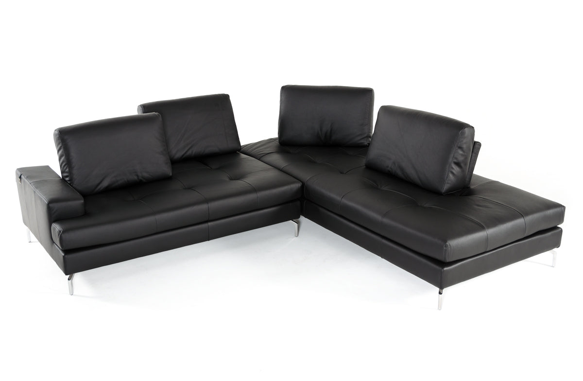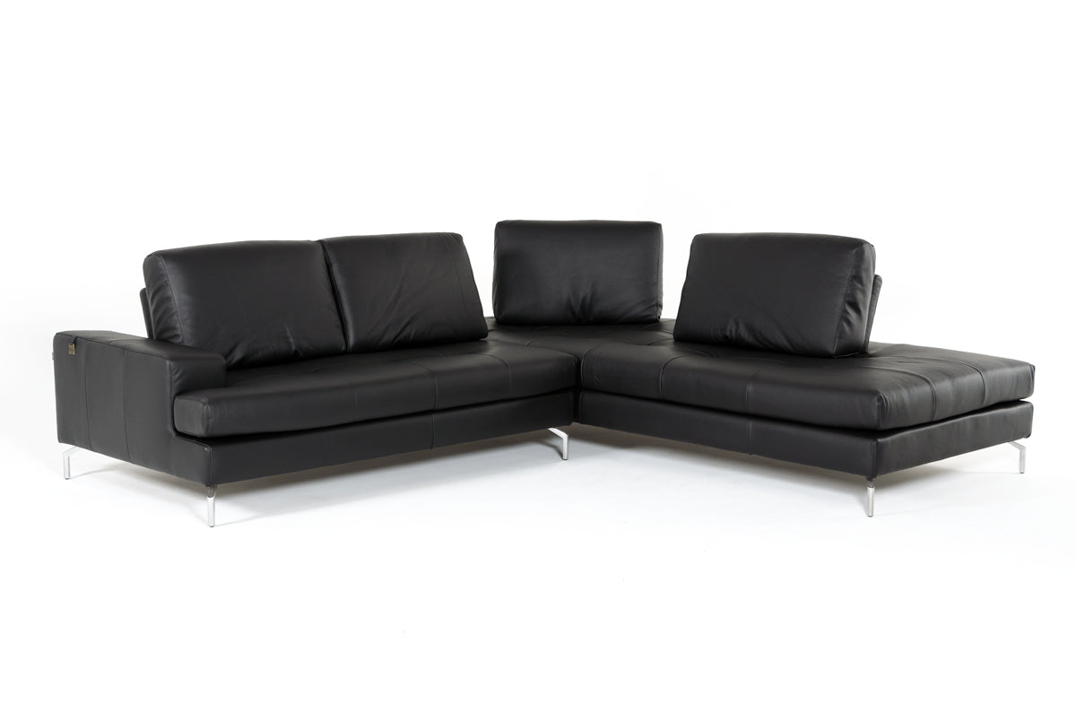 Lamod Italia Voyager Modern Black Leather Right Facing Sectional Sofa