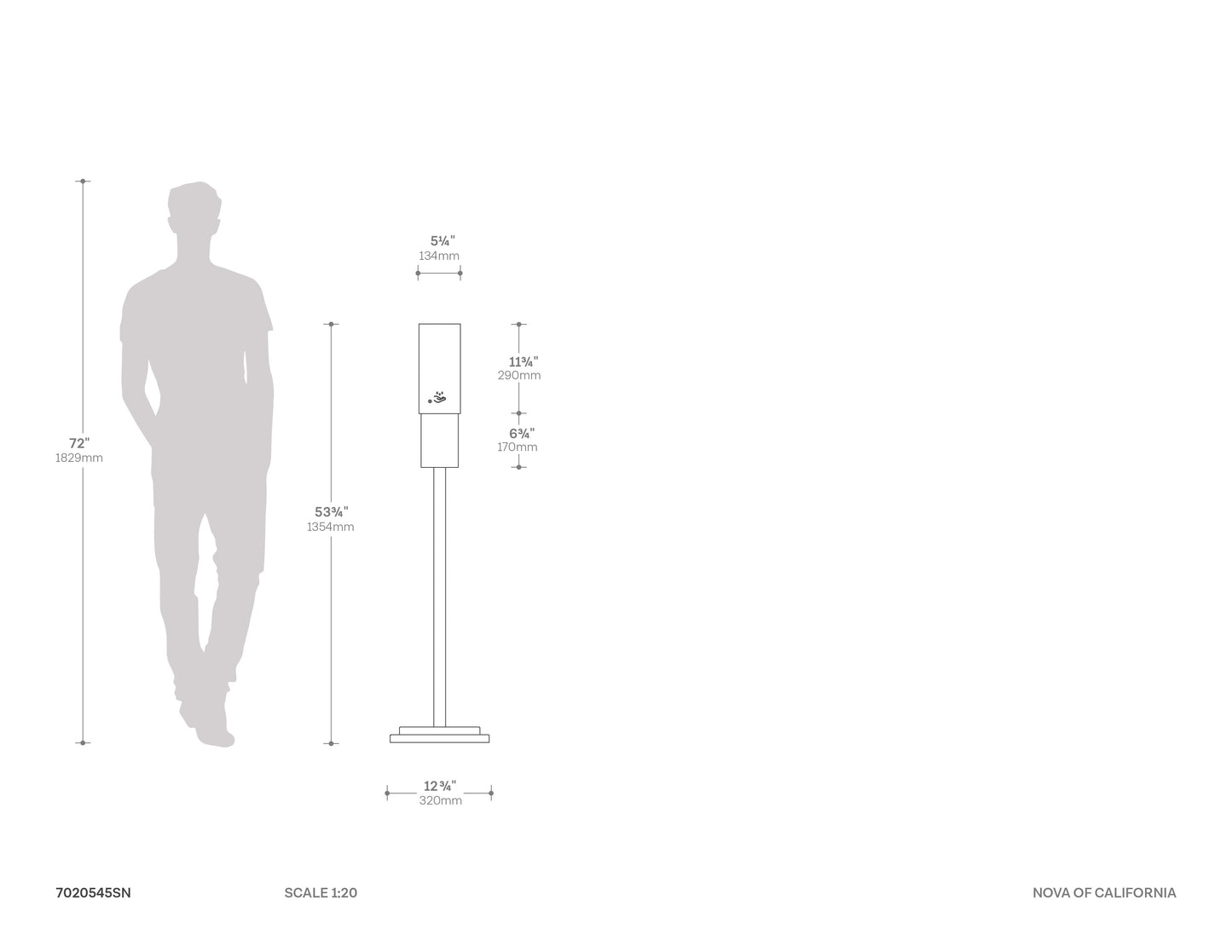 Experience the finest luxury hand sanitizer dispenser available today. Our Luxe Touchless Floor Stand Hand Sanitizer Dispenser is a perfect blend of attractive design and effective germ-killing performance. NOVA's Luxe dispensers are the most high end hand sanitizer dispensers available on the market today and are 99.9% effective in killing harmful microbes. When looks are important and plastic bottles won't do, consider a luxe option. Elevate health and wellness in public spaces, hotel lobbies, offices, elevated residential and various facilities where the well-being of your employees, customers, or guests is of utmost importance. This stand can be customized to include company logos, adding a personalized touch to your health and safety measures. Promote a safe and hygienic environment with our Touchless Floor Standing Hand Sanitizer Dispenser, ensuring the well-being of everyone in your space with style and efficiency.
