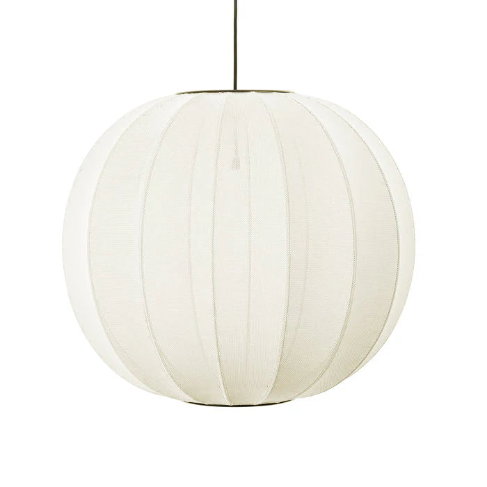 Floor lamp with foot switch on cord providing diffused ambient light. Bulb is visible through shade and one can use either a frosted or clear bulb to change the look. Production Process: The shade is knitted in three dimensions to give the ultimate in visual texture and interest. This process produces no waste material.